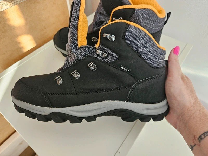 Prodávám kamarádce, kotníkové boty značky Halti, velikost 37, vypadají že jsou snad i nenošené, jsou bez tkaniček, nepromokavé, membrána Drymaxx, vhodné asi na mírnou zimu, jaro a podzim, jazyk je zčásti napevno k botě, délka vnitřní stélky max 24 cm