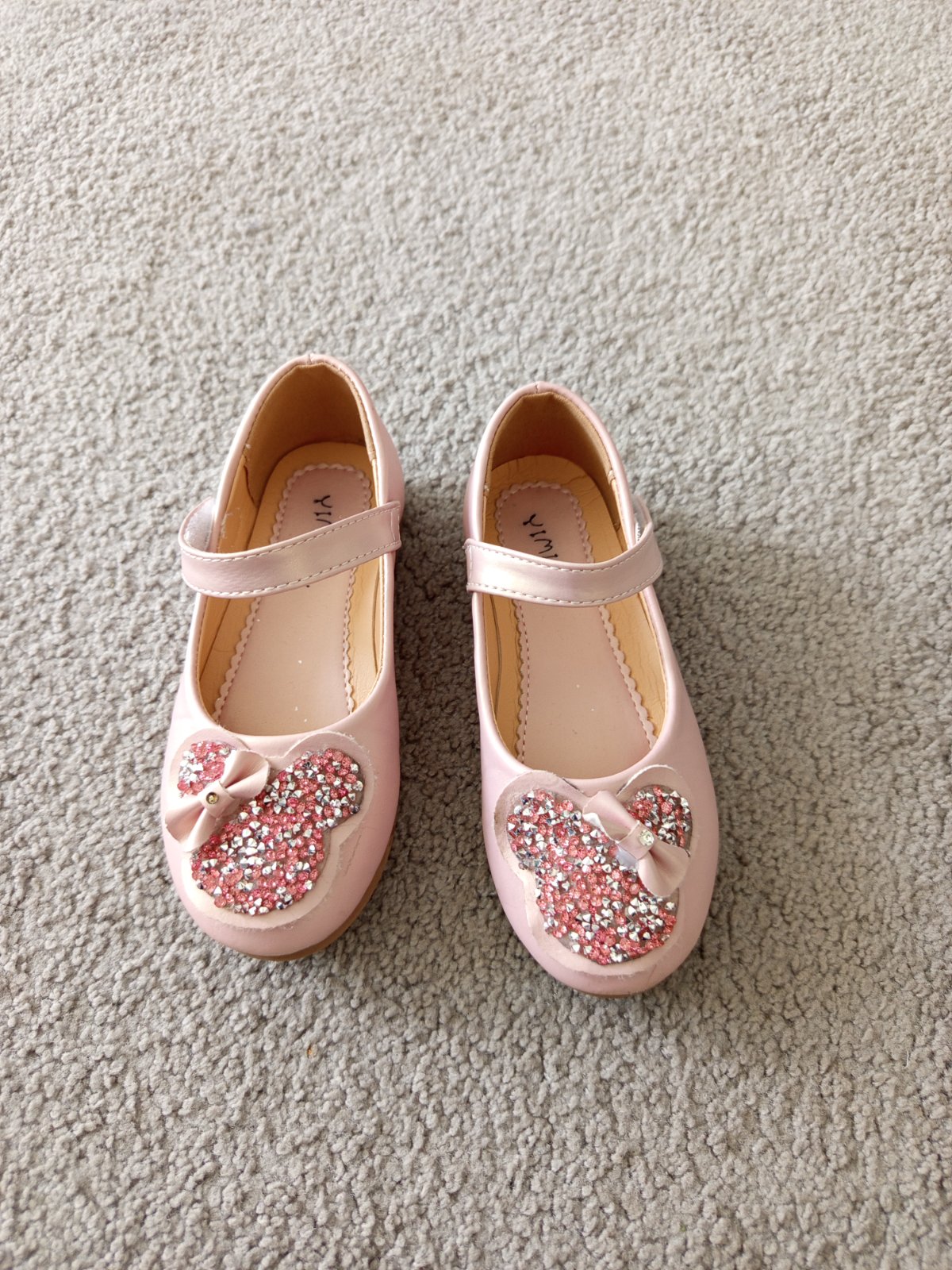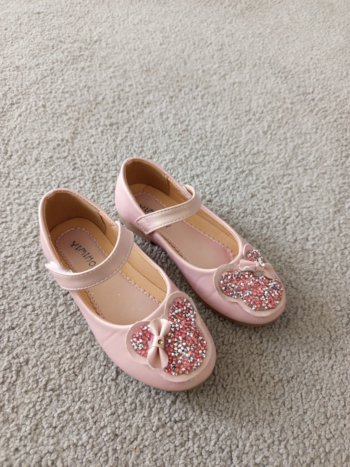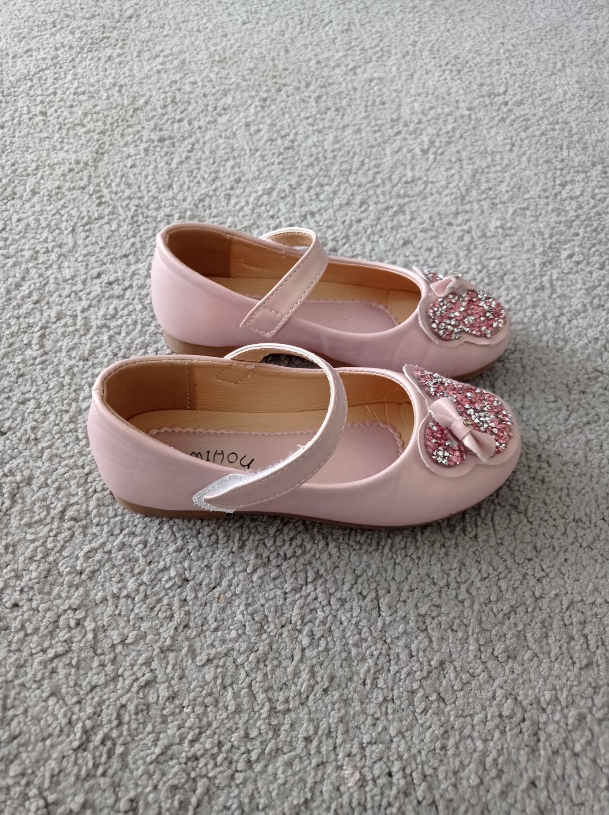 Nošené balerínky, kupované v Lidlu. Velikost 29, kožená stélka, délka 18,5 cm. Odřené špičky, viz foto, jinak v zachovalém stavu. Dcera nosila spíš na doma.