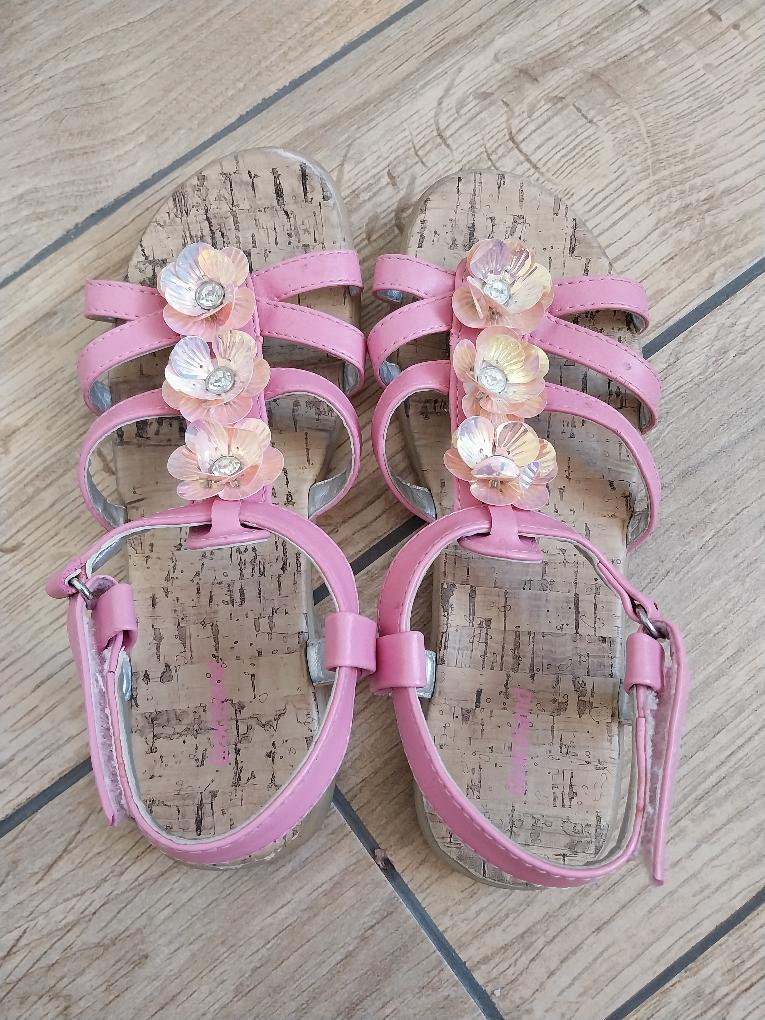Dívčí letní sandálky s kytičkami.Délka stélky je 21,5 cm.Stále moc hezký stav bez jakýchkoli vad.