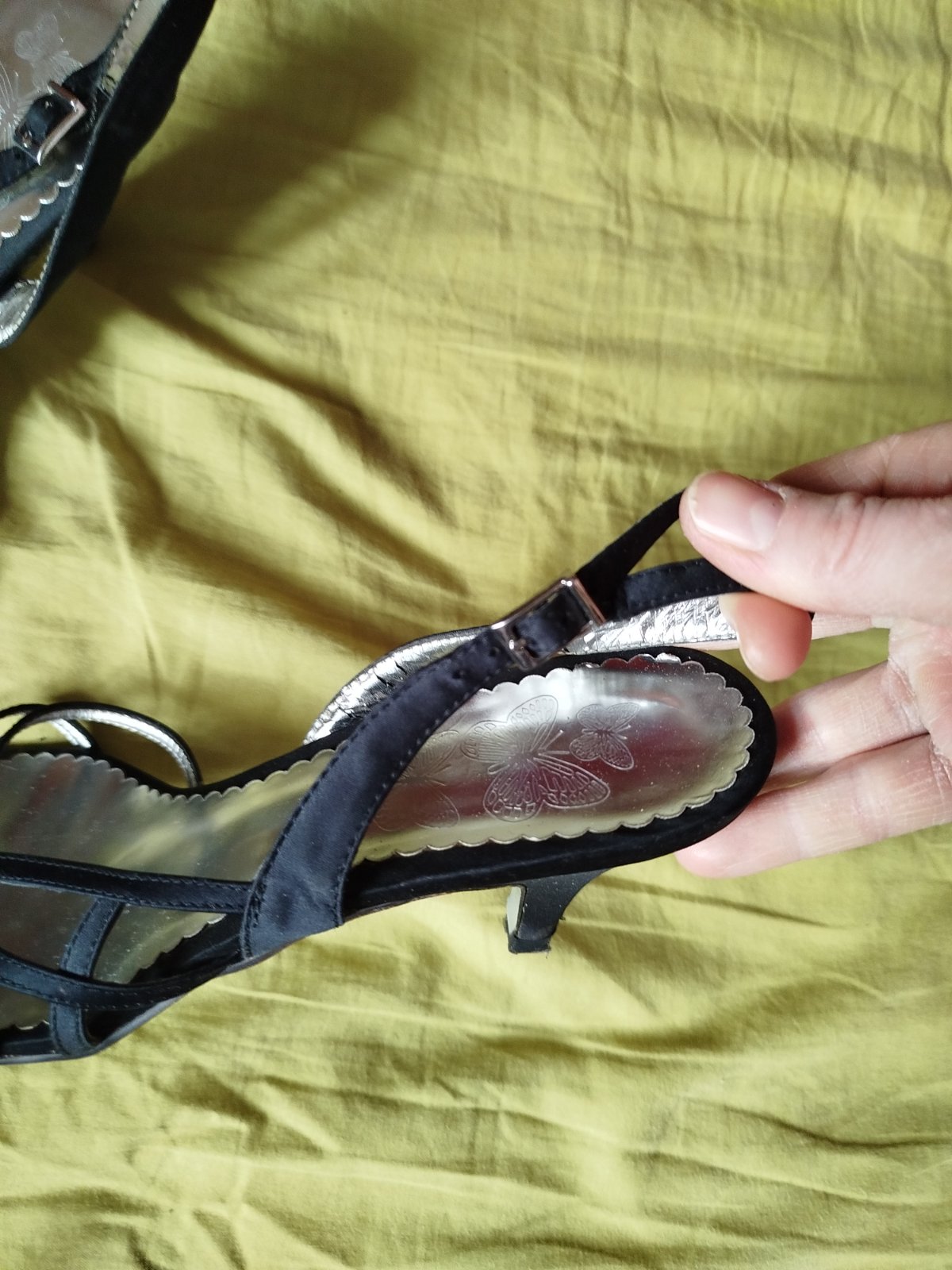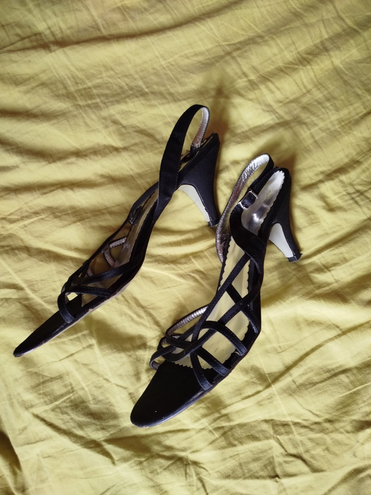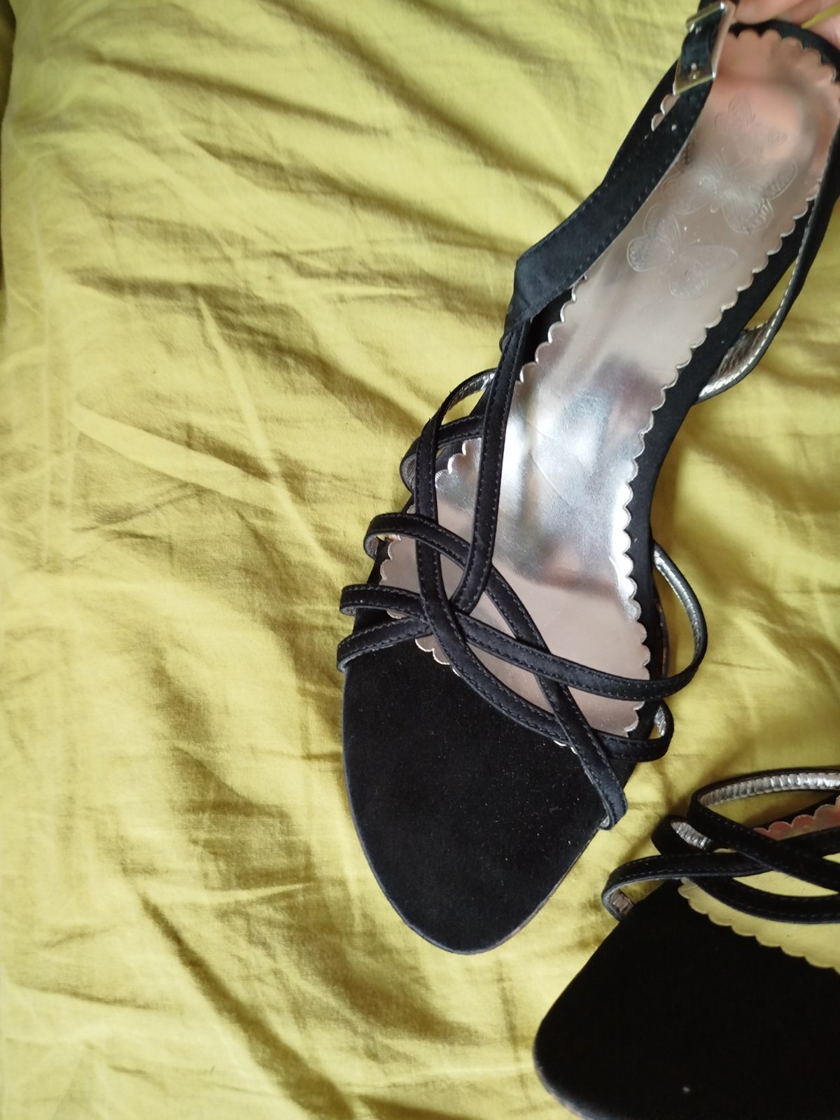 Střevíčky na širším podpatku cca 11 cm. S otevřenou špičkou i patou.