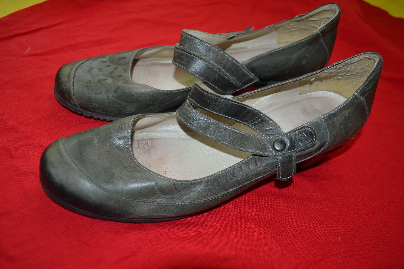 kvalitní moderní kožené dámské boty,barva šedozelená,měkké,krásně sedí,díky pásku se nevyzouvají,ten se nezapíná.je na pružné gumce,botu tedy jenom nazujete,velmi praktické,tmavé špice u bot přesně tak patří,takto koupené,původní cena 1600kč,velká sleva,stélka 26cm