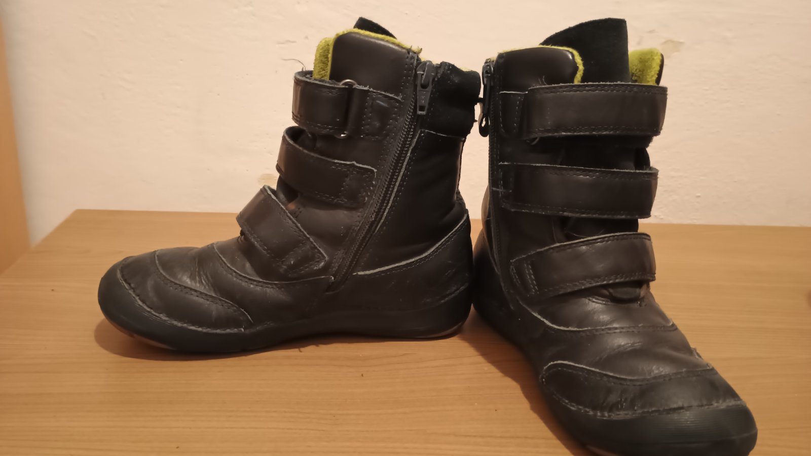 Kožené zimní boty, zapínání ze předu na suchý zip, nebo z boku na zip.