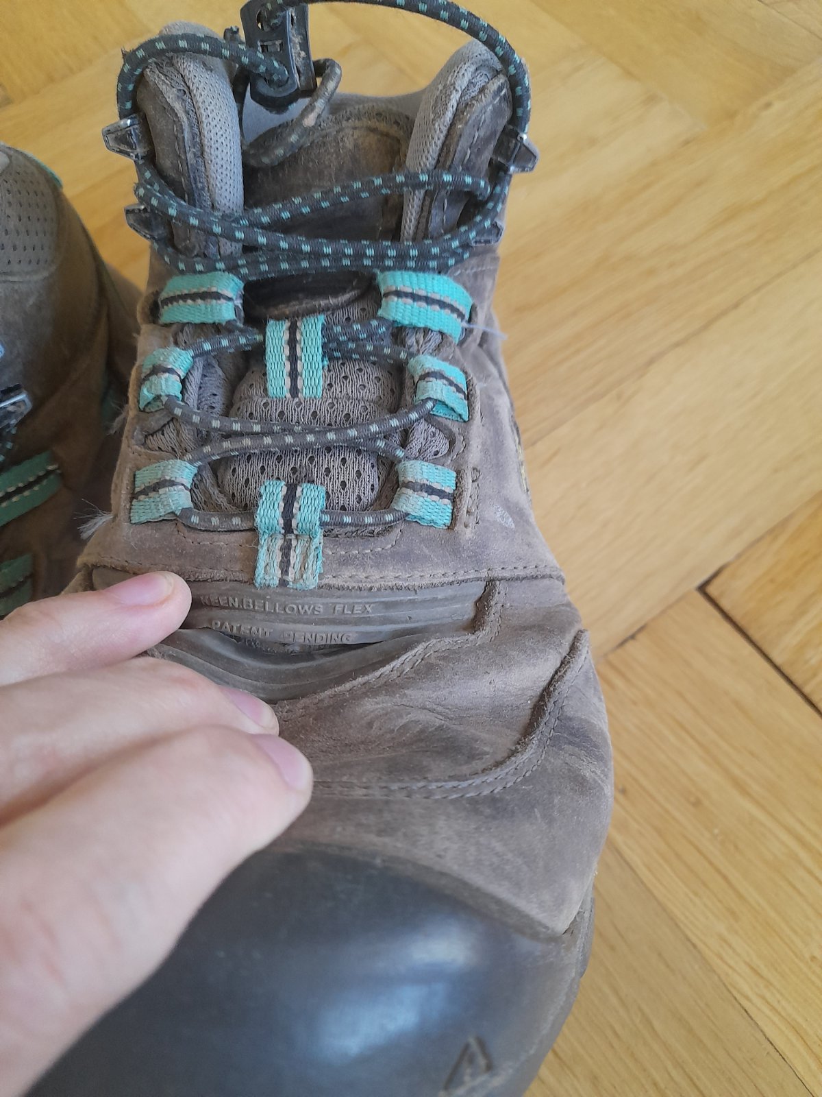 Prodám pohorky Keen ridgeflex. Velikost 38. Bohužel na jednom nártu praskl plast a jeden šev. Asi už nebudou nepromokavé, ale na béháni v suhu pořád dobré.