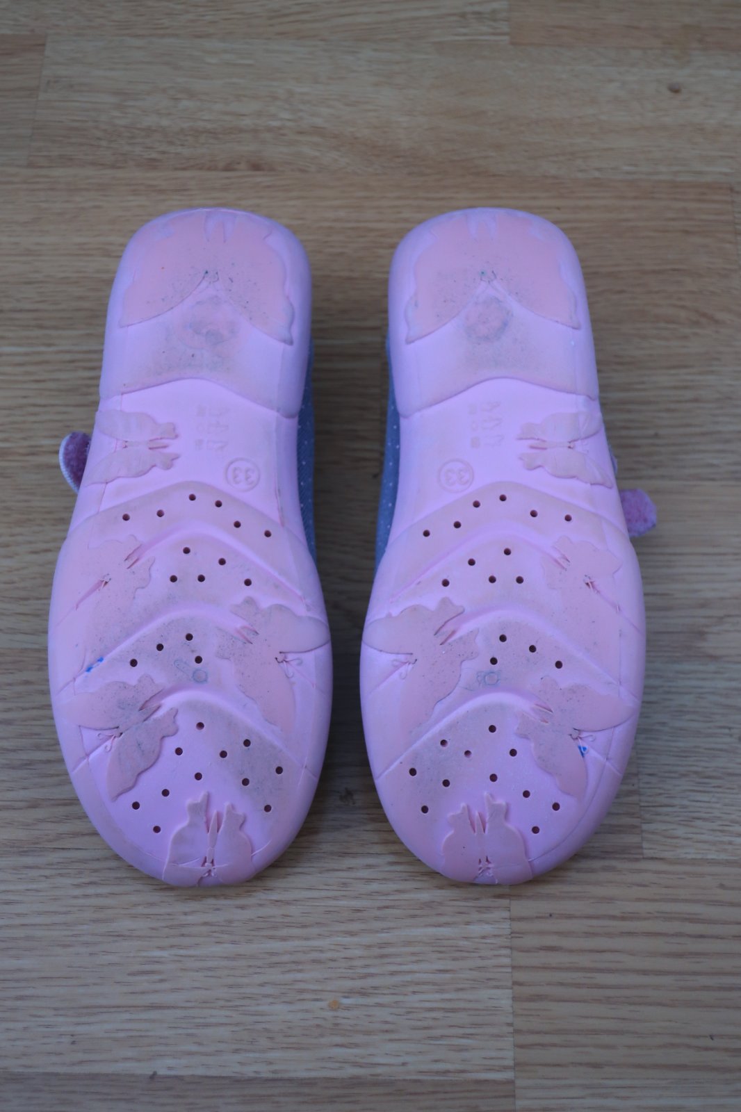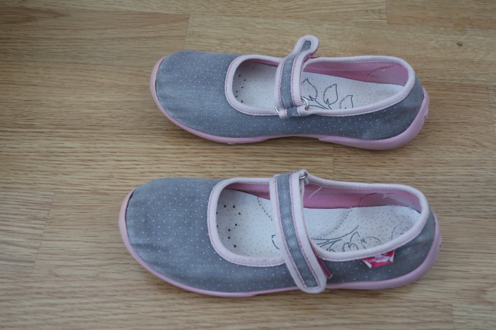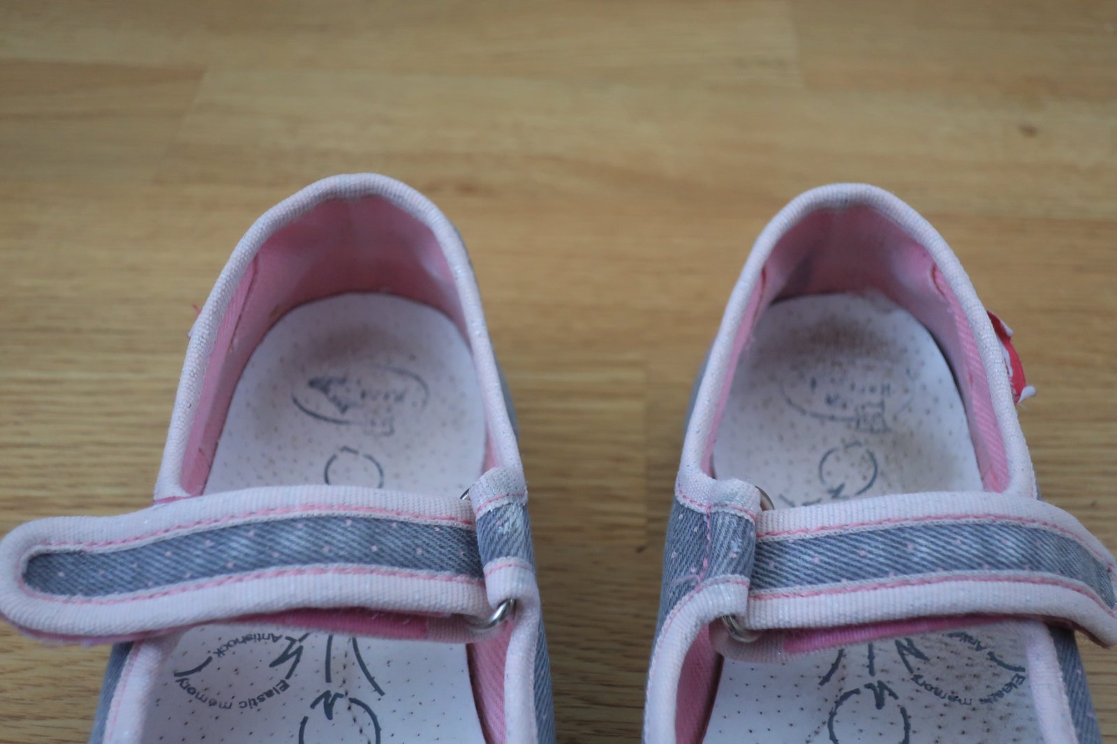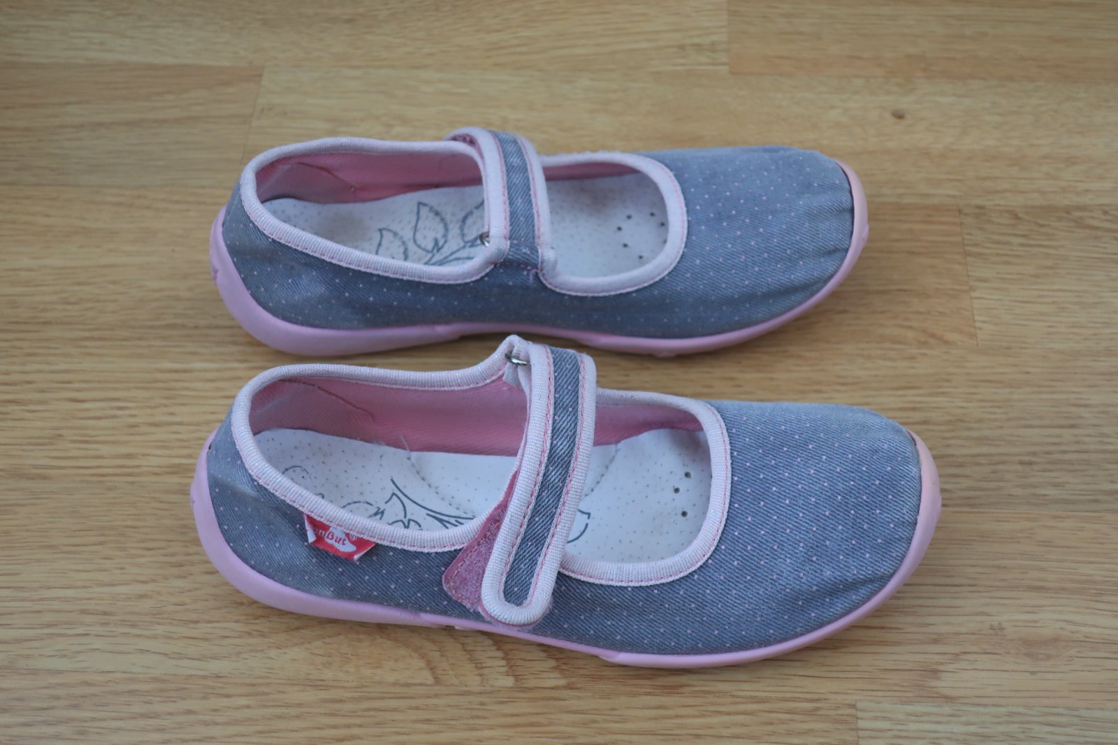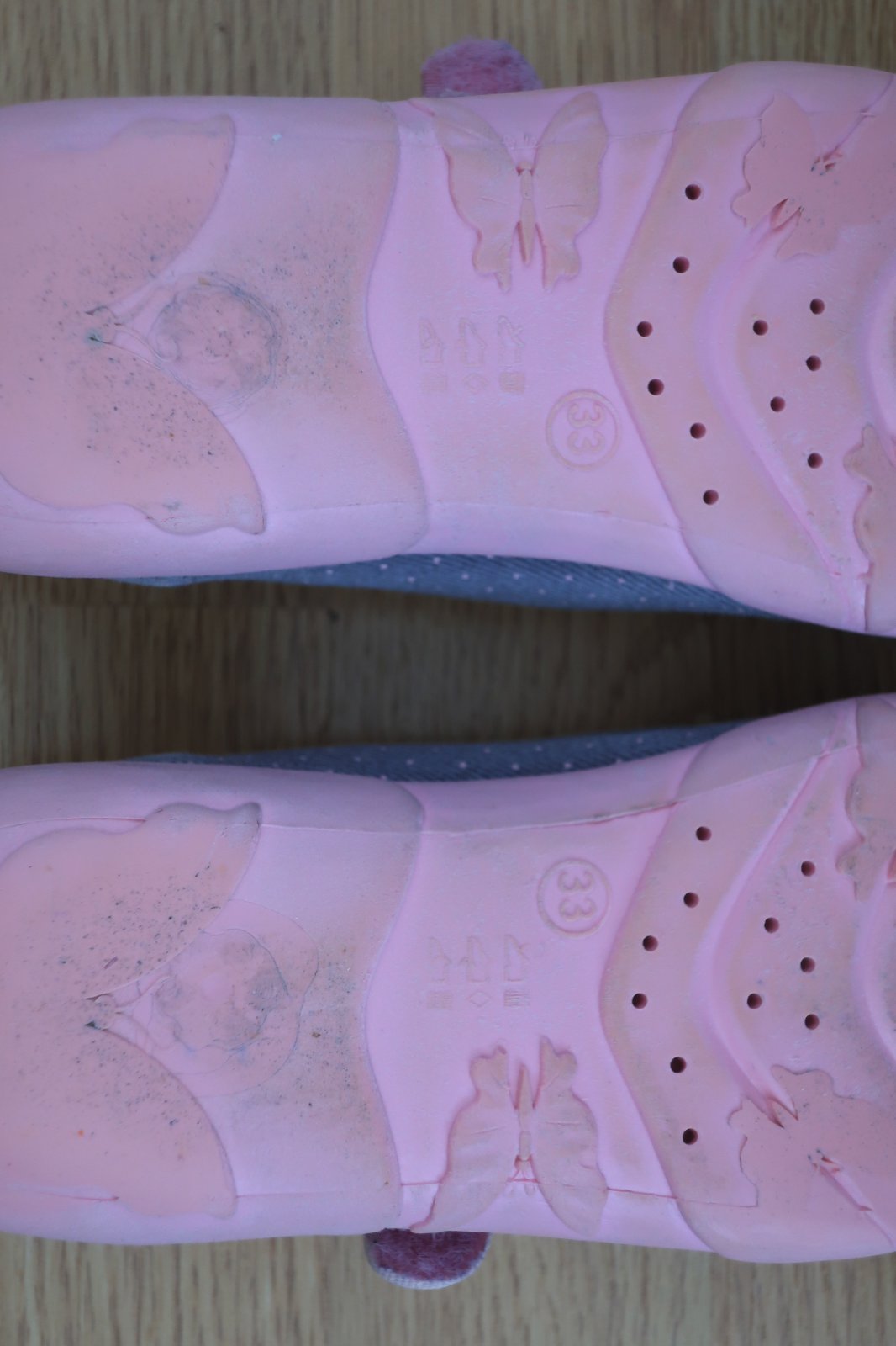 Prodám dívčí textilní papuče zn. Ren But, vel. 33, délka stélky cca 21cm. Vyndávací prodyšná stélka, prodyšná podrážka. Barva šedá s růžovými puntíky, zapínání na suchý zip. Nošené, vyprané, barva lehce vyšisovaná, dobrý stav. Možný osobní odběr v Brně, pošta nebo zásilkovna.