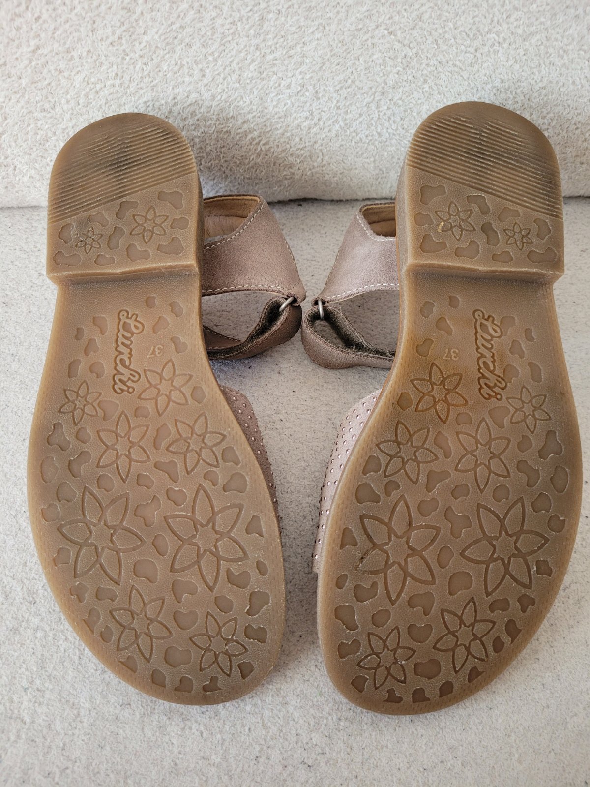 Sandále tělové/šedo-krémové barvy značky Lurchi, na suchý zip oba pásky-přes kotník i prsty (viz foto), kožená stélka, pásek přes prsty zdobený.