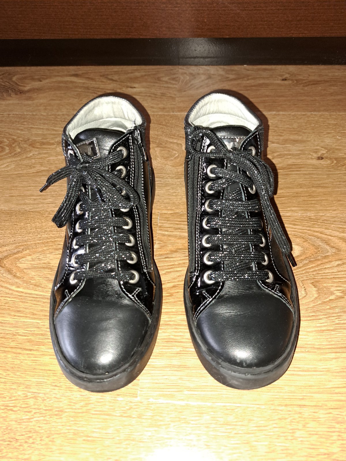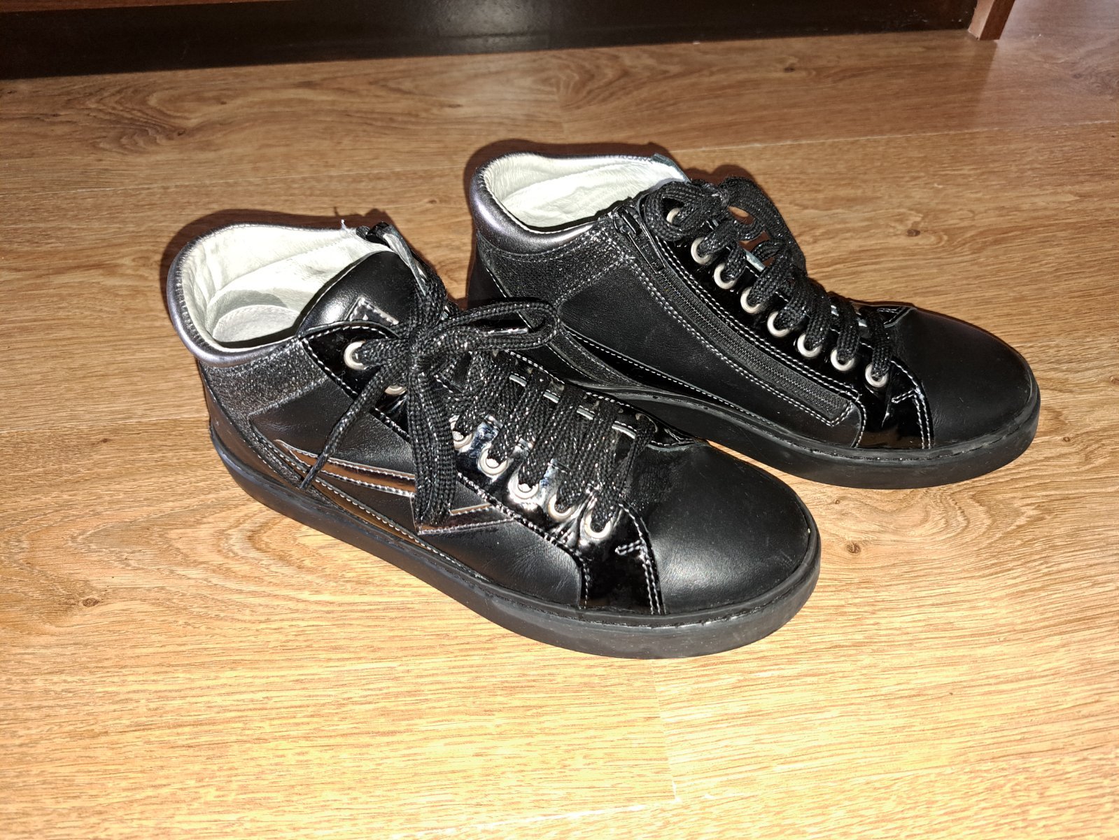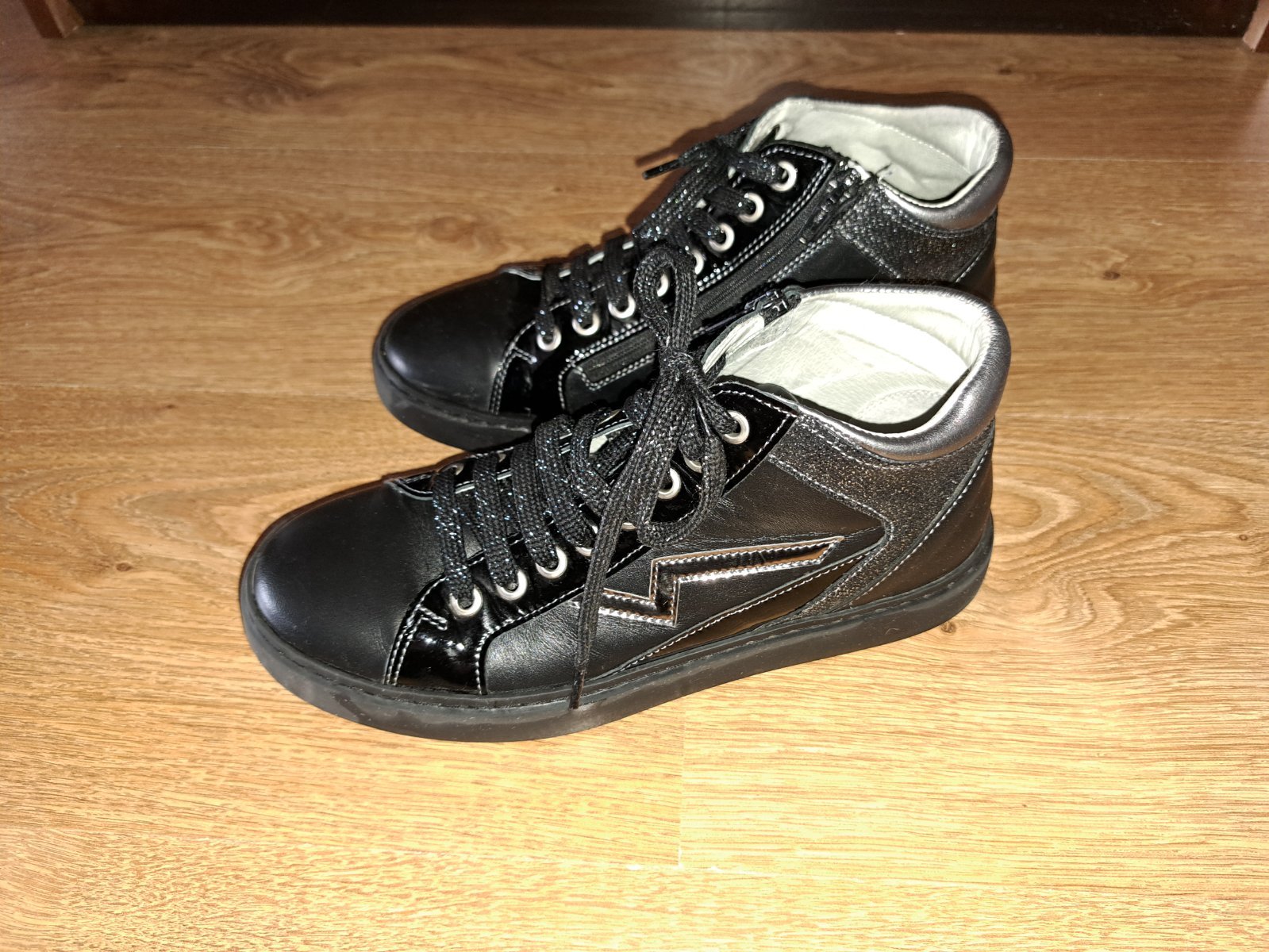 Dívčí kožené boty. Zapínání na zip, popř. šňůrky. Málo nošené, bez vad.