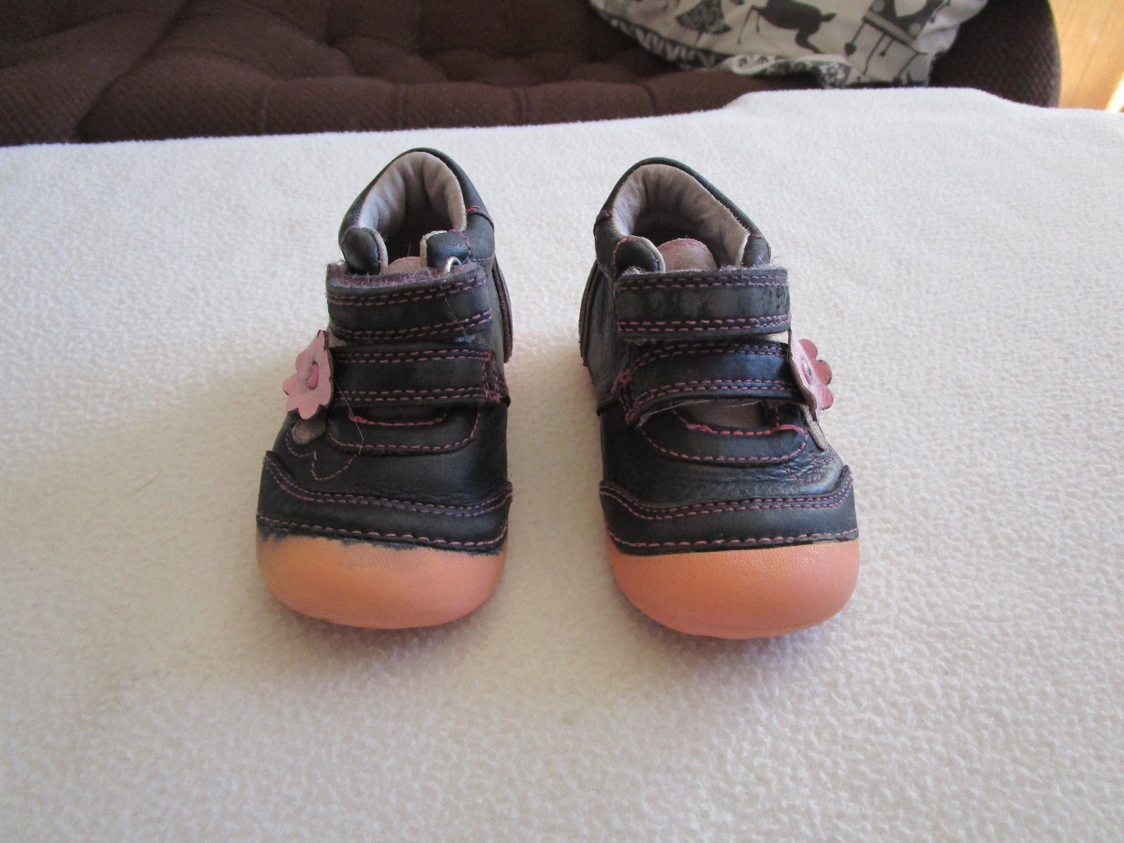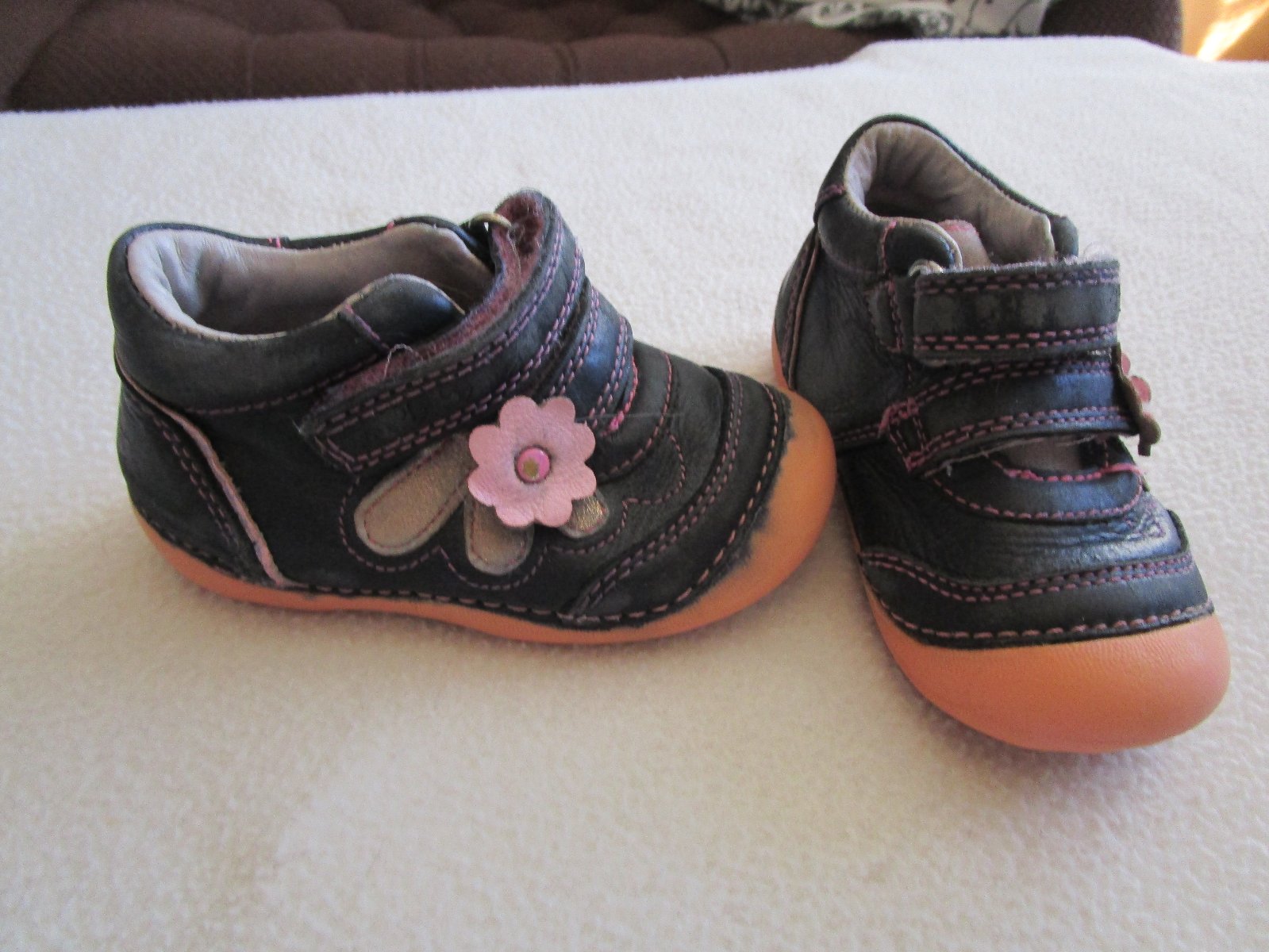 Dívčí kožené tm. modré botičky, zapínání na suchý zip, č. 20, vnitřní stélka cca 13 cm, pěkný stav, cena jen 89 Kč, SRN.