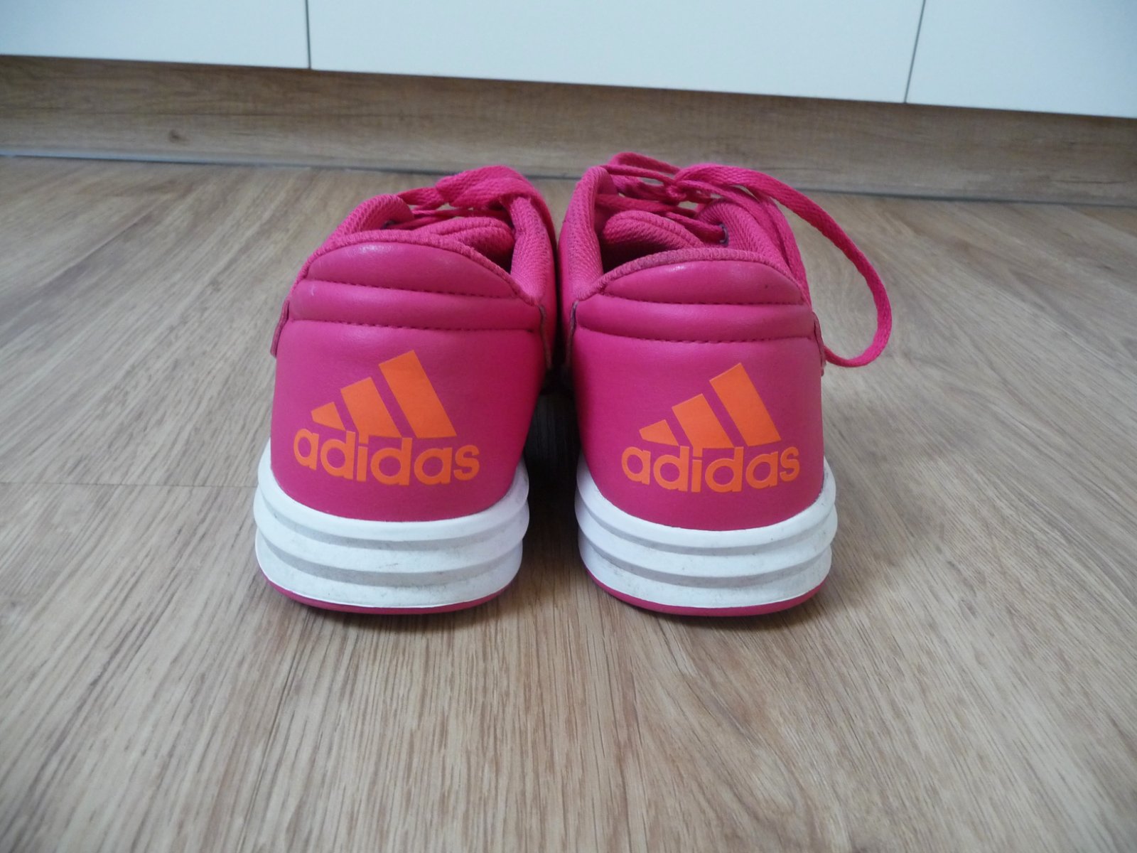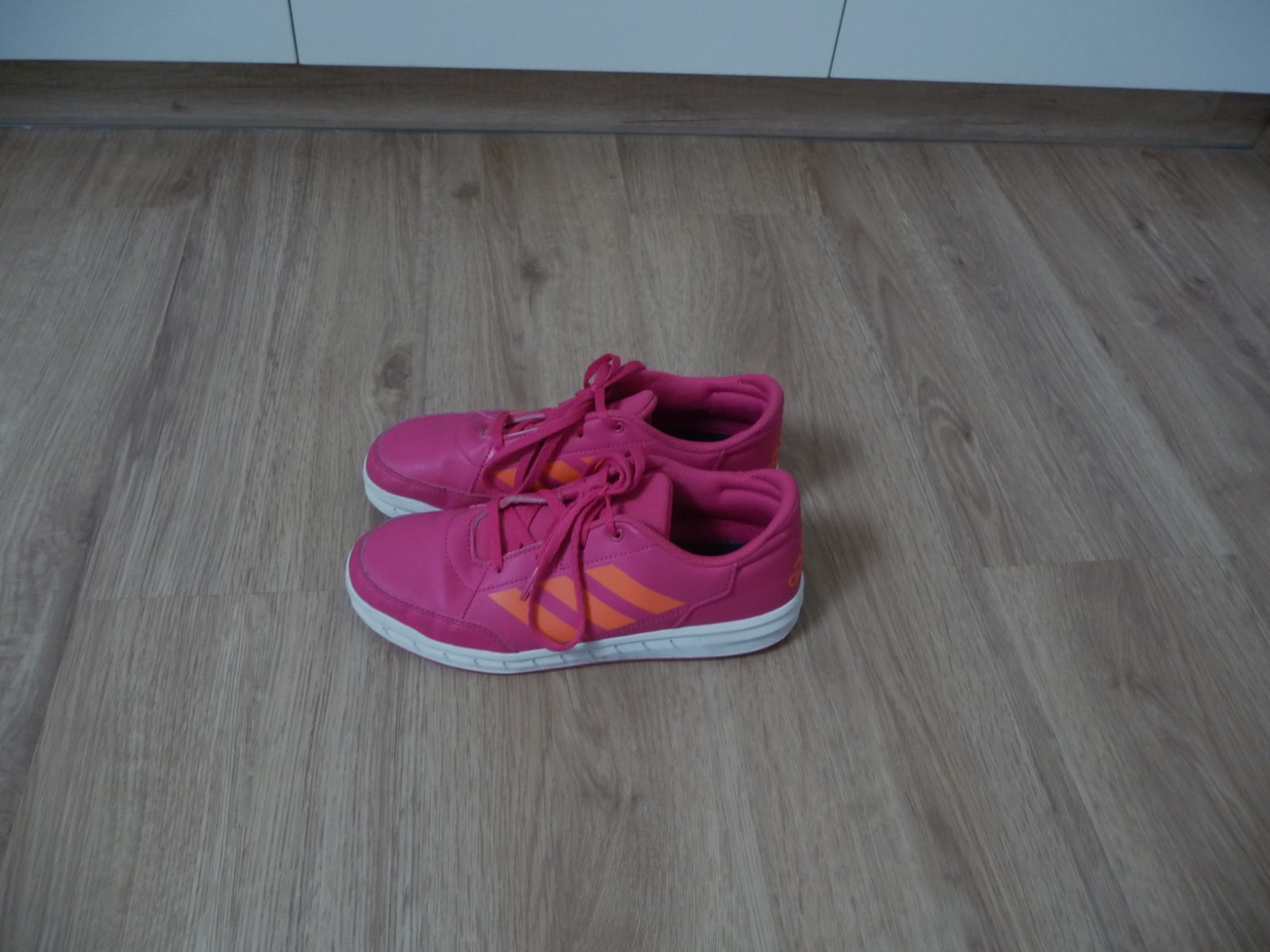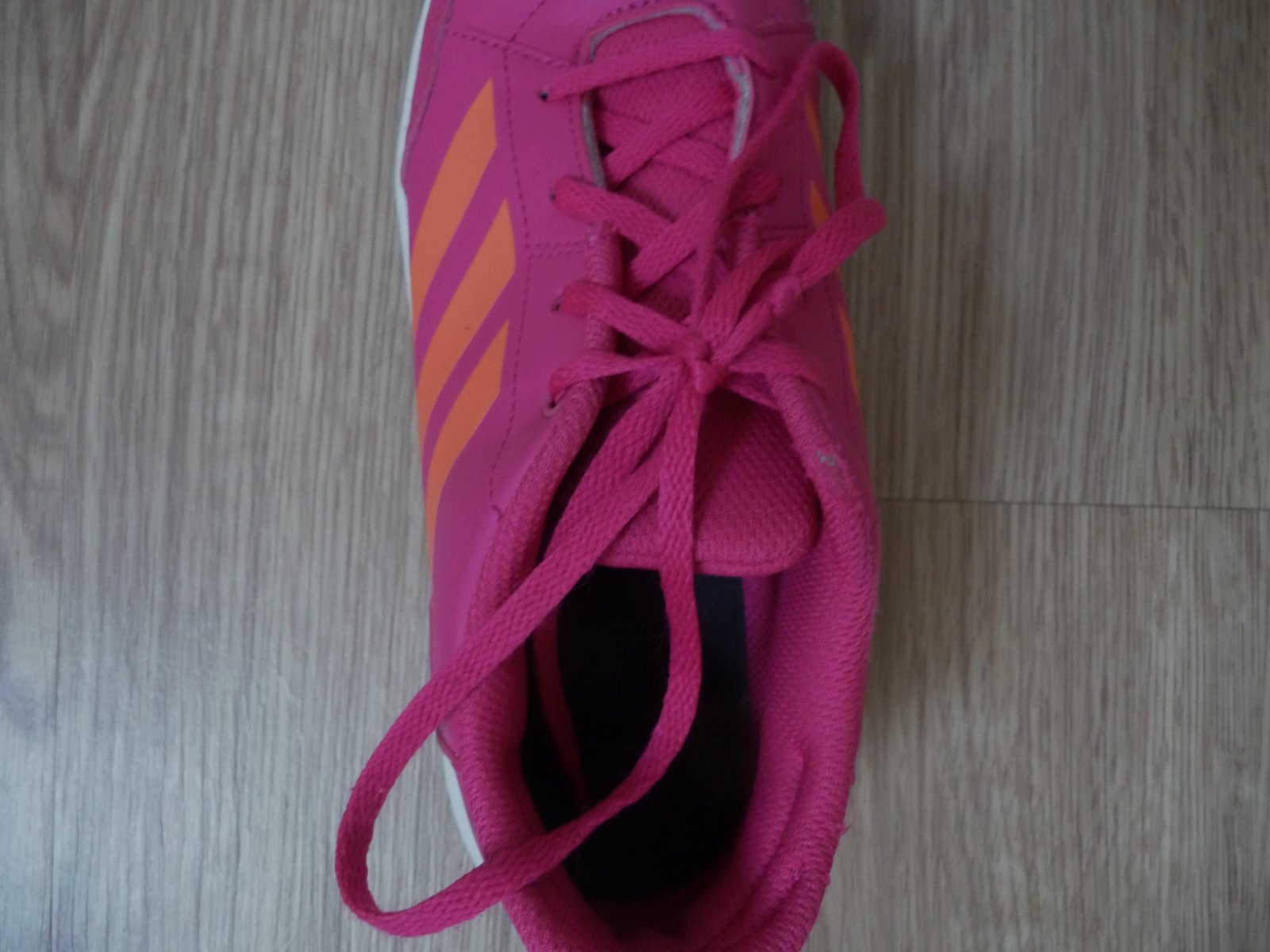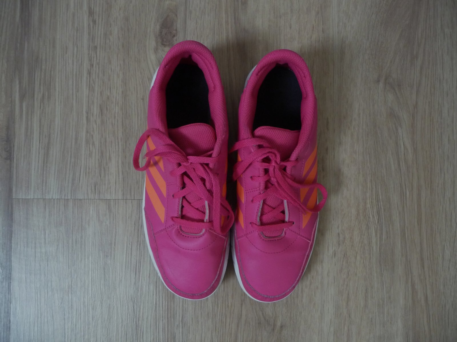 Prodám růžové dívčí boty, tenisky s oranžovými pruhy zn. ADIDAS, vel. 38. Výborný stav, jen na jedné botě v síťovině malá dírka, téměř nejde vidět, nafoceno a zohledněno v ceně. Délka stélky 24,5 cm. Poštovné: 89,- nebo osobní předání Praha (Žižkov – Ohrada, Prosek, Kobylisy, Letňany). PC 1200,- nyní CENA: 380,-