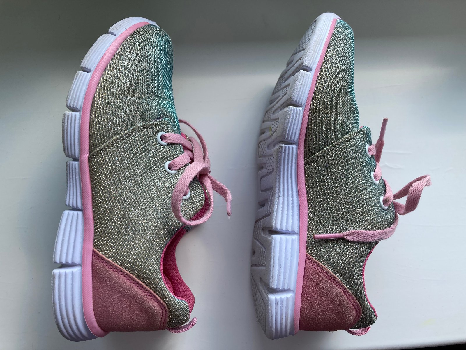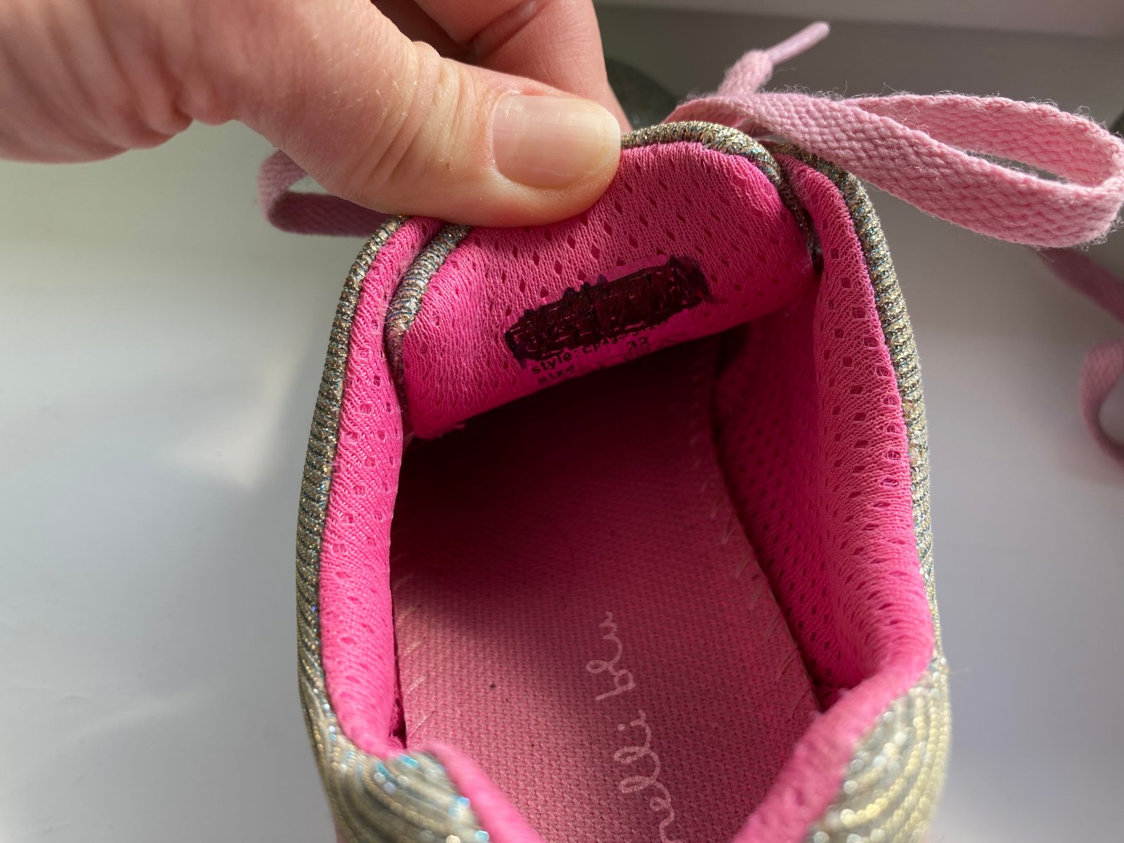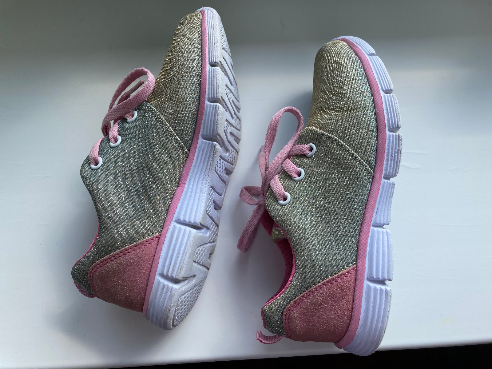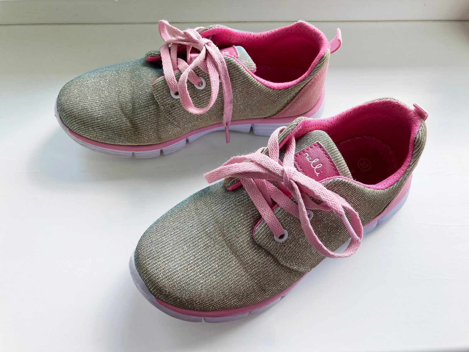 Třpytivé tenisky ve velmi pěkném stavu, stříbrné měňavé podle světla, s růžovými tkaničkami a vnitřkem, velikost 32, zn. Nelli Blue. Nošené málo, bez větších vad, bílé podrážky jsou už trošku zašlé, na vnitřním jazyku je zaškrtané podepsané jméno, tmavá skvrnka na tkaničce (asi od fixy nejde vyčistit), jinak ještě pěkné a udělají parádu, krásně se blyští na sluníčku. Pořizovací cena 599Kč, nová cena 250Kč. Lze zaslat poštou / balíkovnou / zásilkovnou (poštovné dle tarifů), nebo osobní předání Praha 6 - Hanspaulka nebo metro A Bořislavka (při osobním předání lze vyzkoušet).