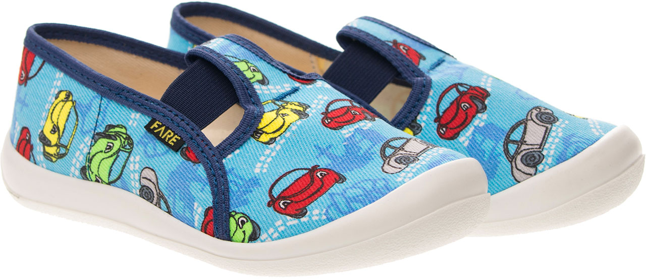 Přezůvková, nízká, textilní, lemovaná obuv, pruženkové uzavírání. Materiál svršku je z barevného pracího kordu, vnitřek je z bavlněného kepru. Podešev je vyvinuta jako odlehčená, materiál podešve z termoplastického elastomeru, je neklouzavá pro všechny běžně používané podlahoviny. Tato domácí a přezůvková obuv odpovídá ortopedickým požadavkům a zásadám zdravého obouvání. Obuv je v prstové části prostorově vytvarována, je vybavena pevným opatkem. Vkládací stélka je vybavena komfortní tlumící vrstvou. Obuv je designována v souladu s módními trendy včetně podešve, která chrání přední část před rychlým opotřebením.