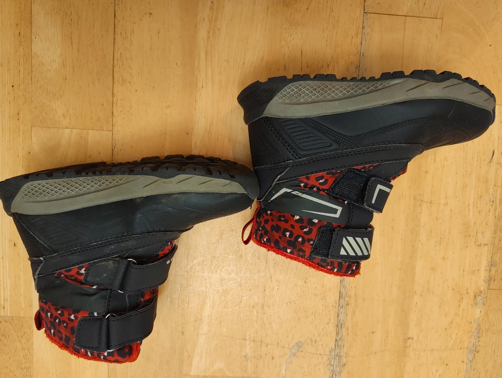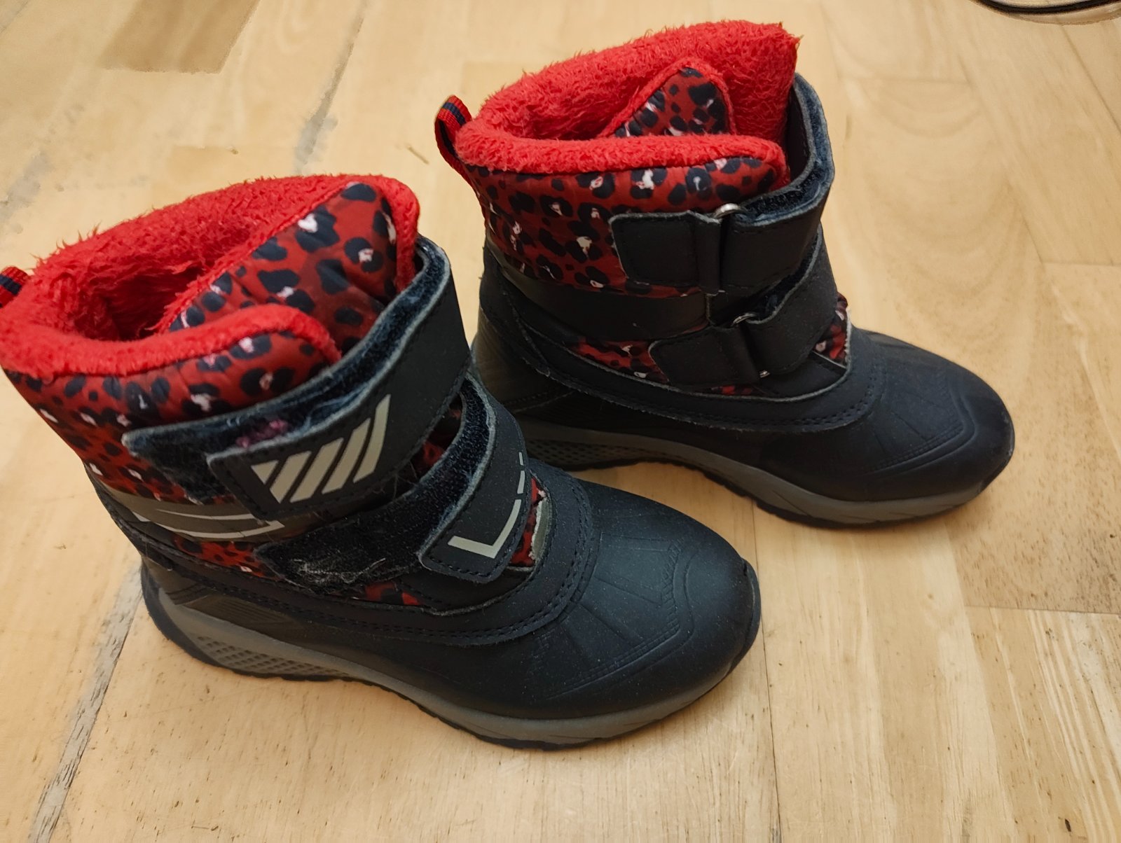 Prodám dětské zimní botky na suchý zip,vel.27 (stélka cca 16,5 cm).Nošeny-stav odpovídá běžnému nošení-viz foto,ale určitě ještě poslouží.Cena 230,- a pošta.