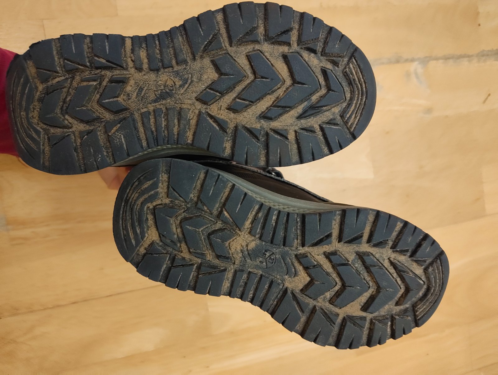 Nepromokavé zimní botky. Membrána goretex - celou zimu noha v suchu. Osvědčily se, koupím zase. Nekloužou. Na pravé špičce lehce odřené, zohledněno v ceně.