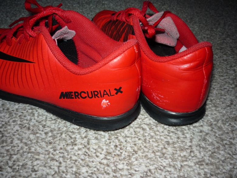 Nejsou okopané, pouze na pravé botě tmavý flek, nejde vyprat. Zohledněno v ceně. Do tělocviku ještě určitě dobře poslouží.