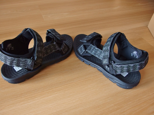 Prodám zcela nové turistické značkové sandále zn. Hannah. Velikost EU 39, UK 6, stélka 25,5cm. Jedná se o UNI variantu sandálů - vhodné pro ženy i muže. Barva v odstínech černé a šedivé. Běžná prodejní cena 990Kč.