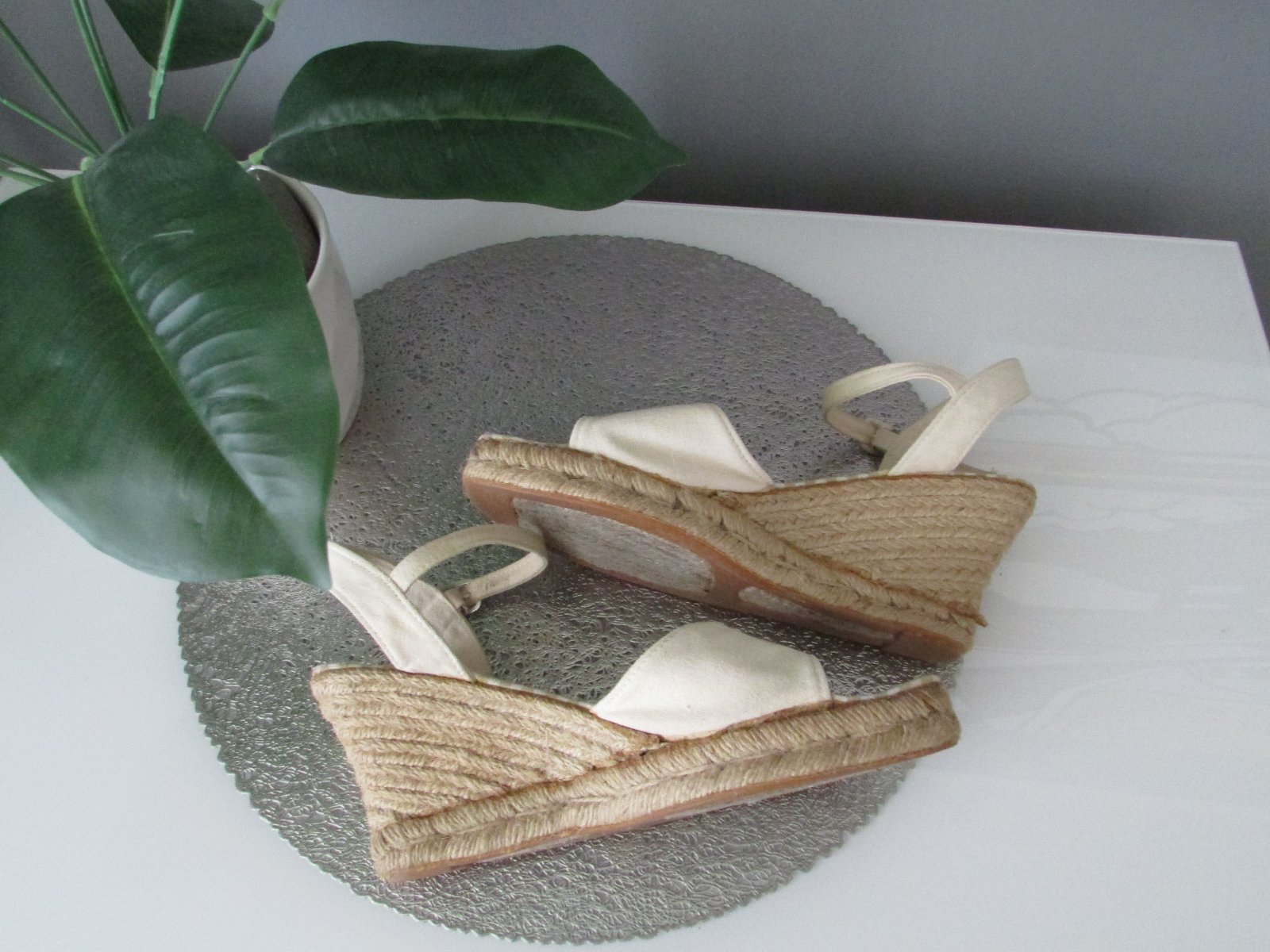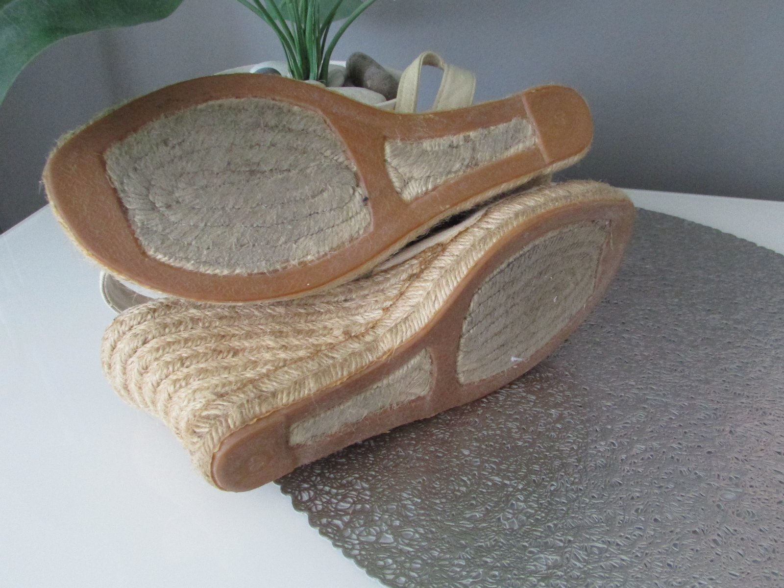 Letní sandálky na klínku, omotané přírodním provazem, něco jako slamáky. Zn. Blue Cox.