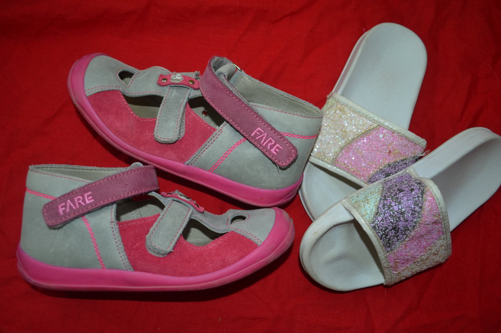 kvalitní vkusné značkové dívčí sandály Fare,kožené,v.29,na suchý zip,pružná podrážka,kožená stélka 19cm,pohodlné a hlavně zdravotně vyhovující dětské noze,vynikající stav,velká sleva+ pantofle ,stélka 19,5 zdarma
