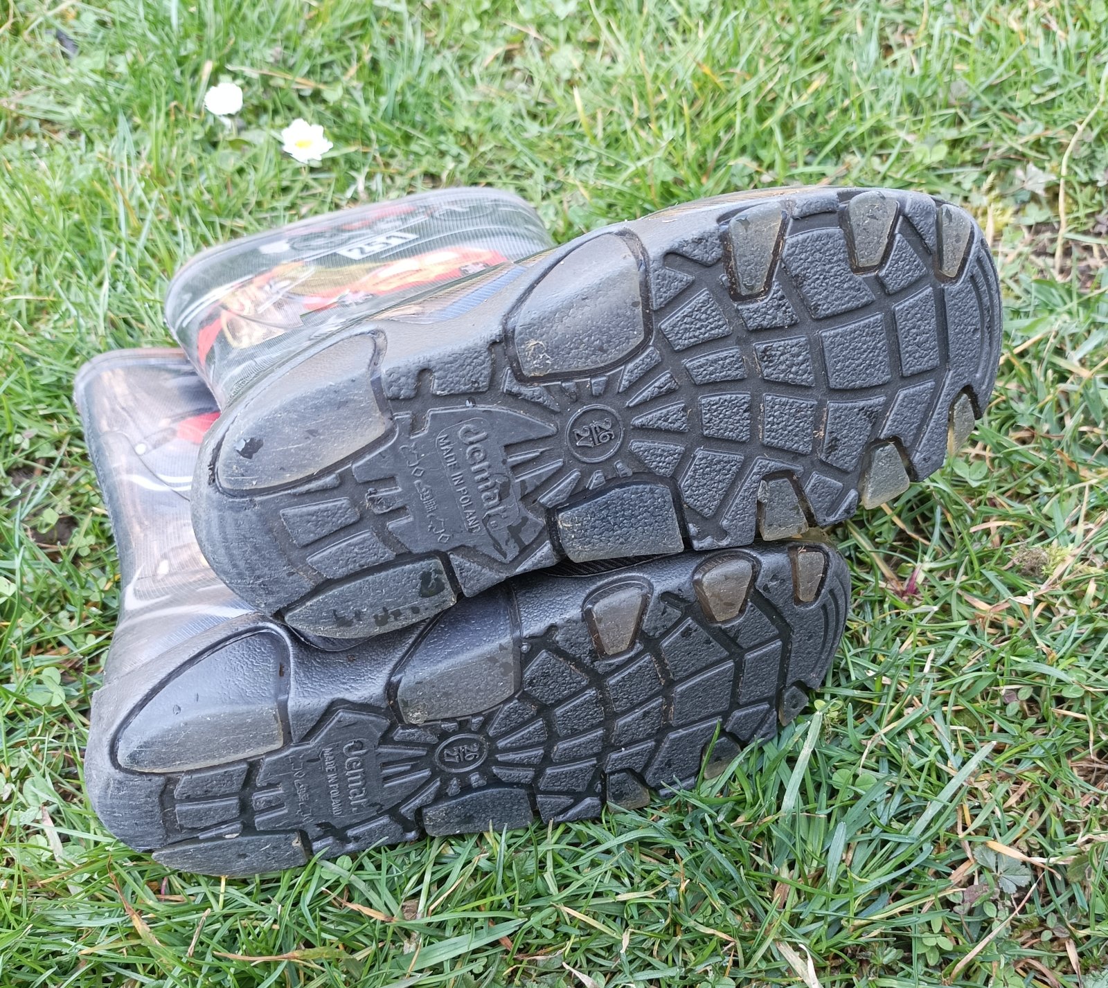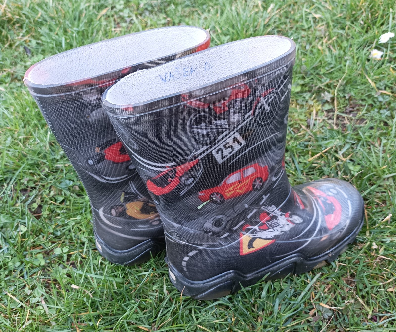 Gumáky po jednom dítěti nošené jen ve školce. Stélka délky 16 cm, uvedená velikost 26.
