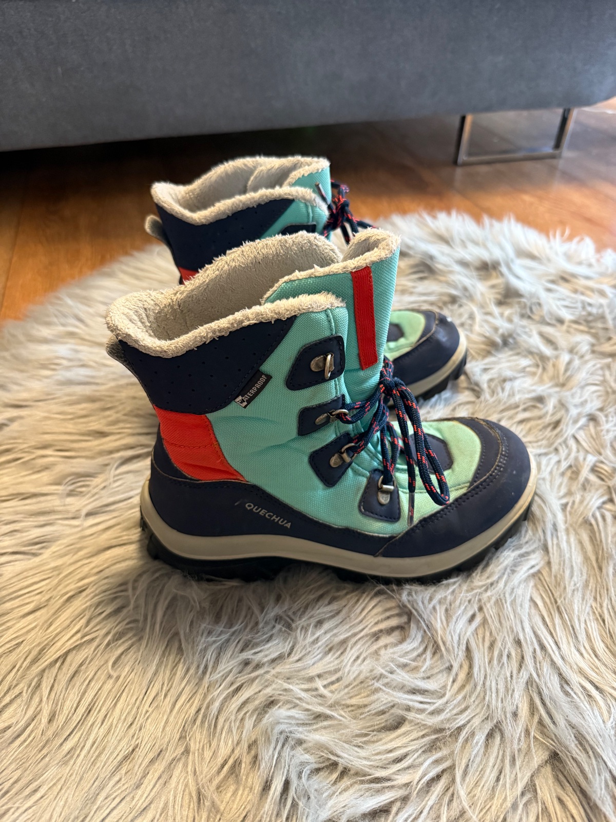 Prodám dětské zimní boty, nošené jednu zimu. Vel 36. Kč 200 + poštovné (zasilkovna, můžete si poslat kód) (Pořizovací cena 899) https://www.decathlon.cz/p/detske-turisticke-nepromokave-kozene-bot...