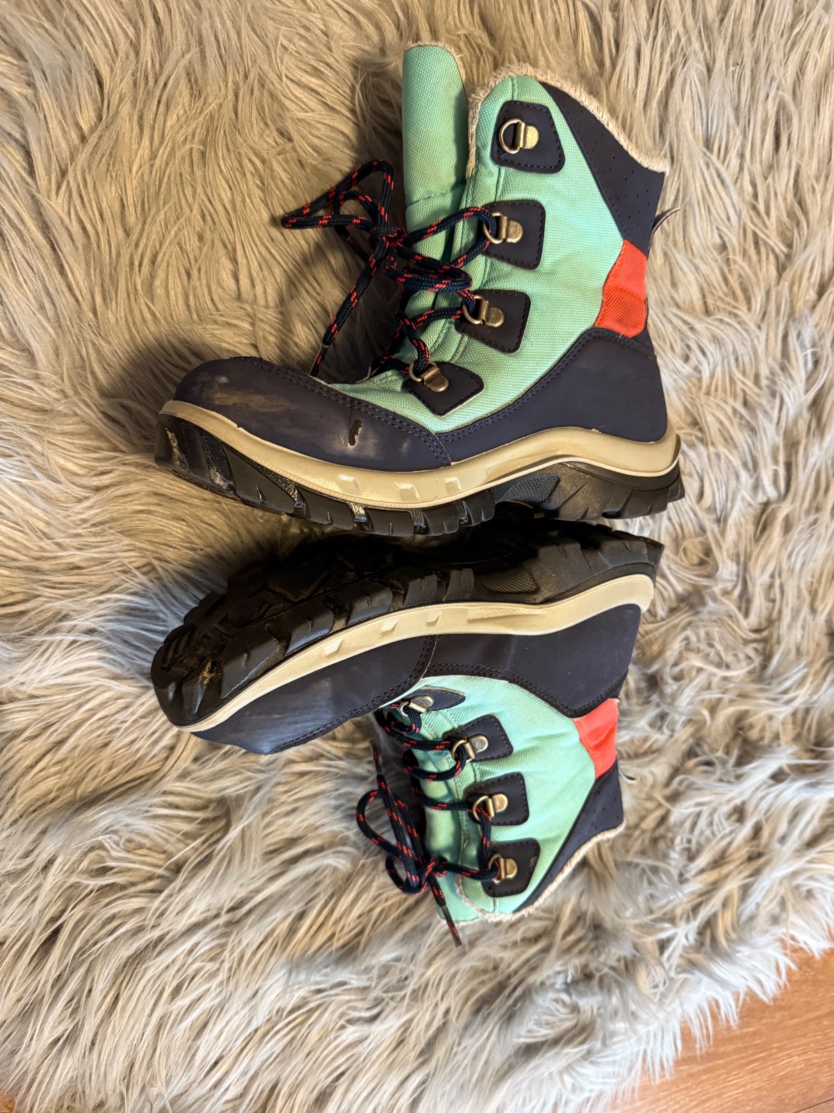 Zimní boty uvnitř teplé ,lehoučké se schopností waterprof. ,nepromokavé ,podrážky nejsou sešlapané .V dobrém stavu