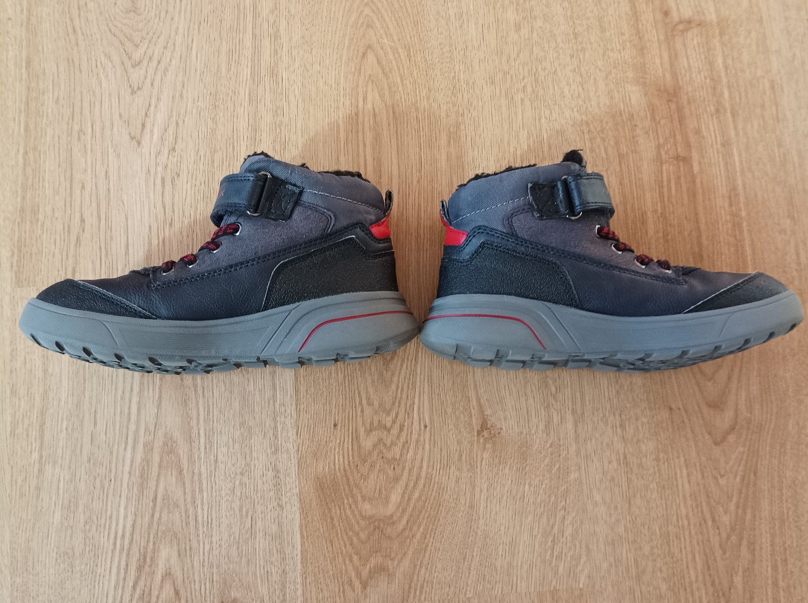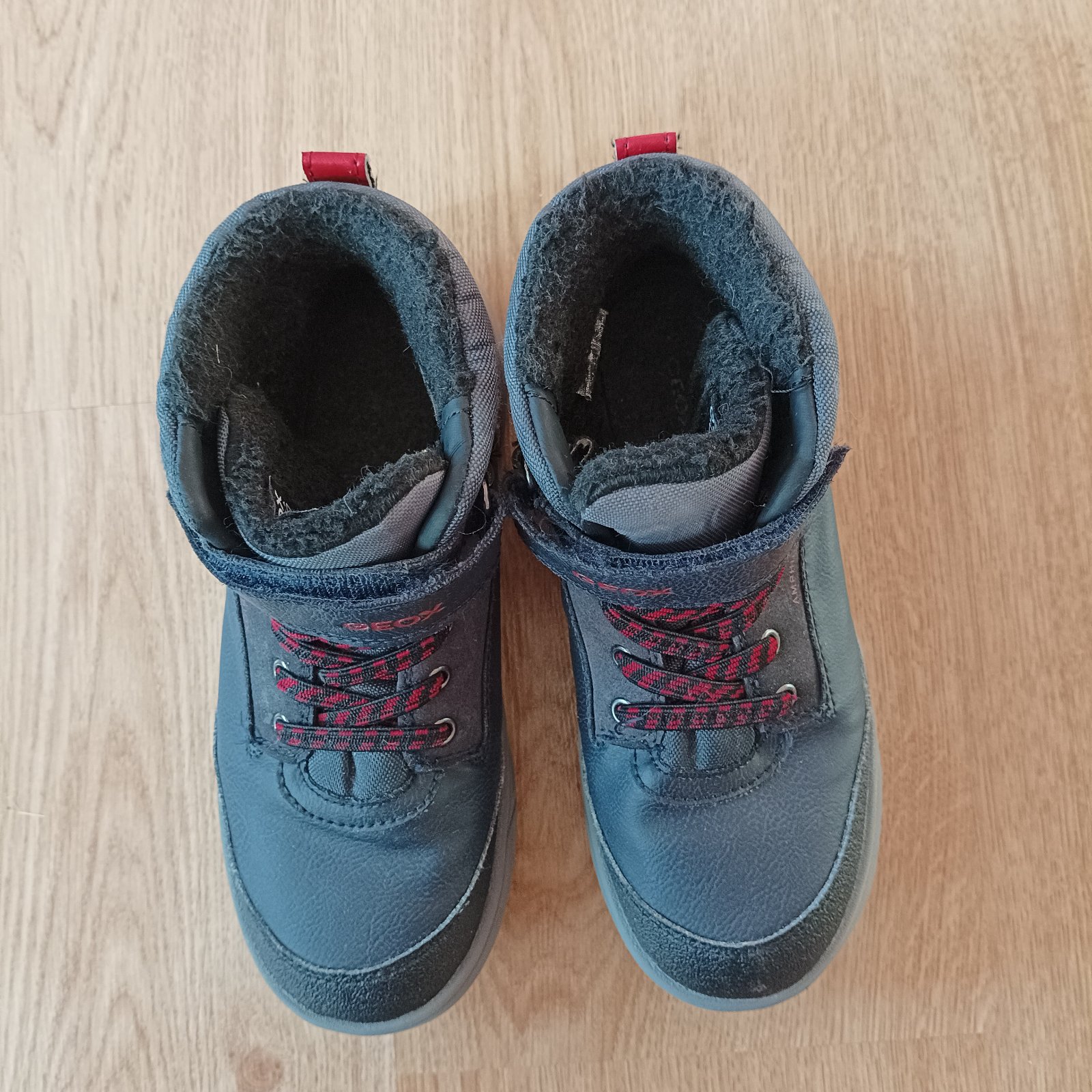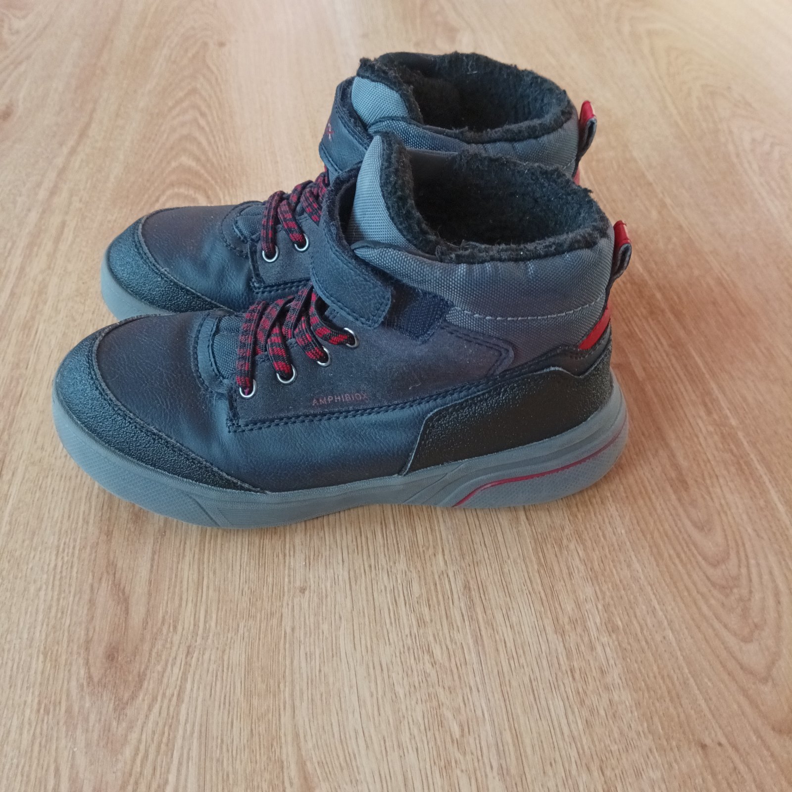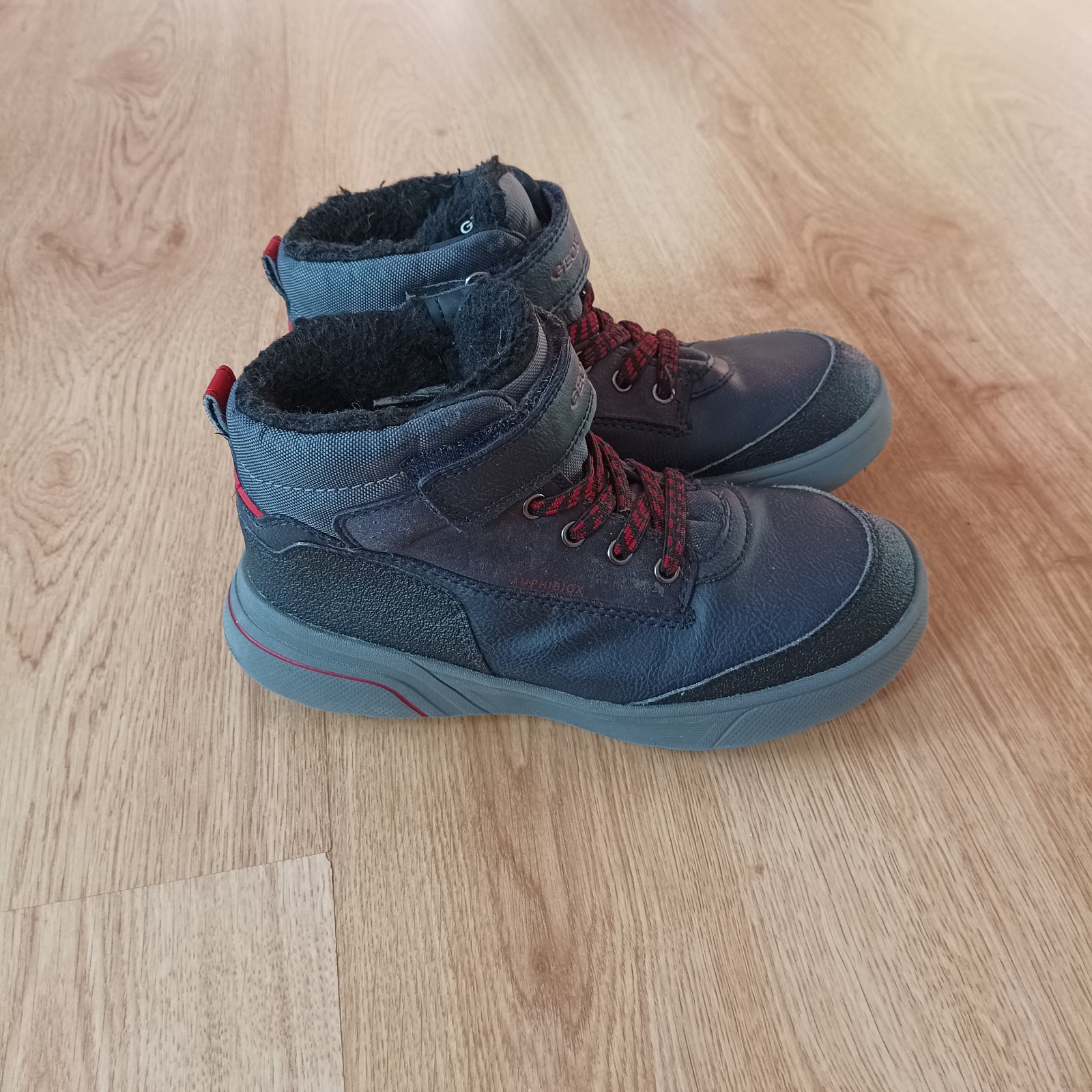 Kotníkové boty vel. 34, zn. Geox, uvnitř kožíšek, membrána amphibiox, suchý zip drží výborně, párkrát vzaté, v krásném stavu.