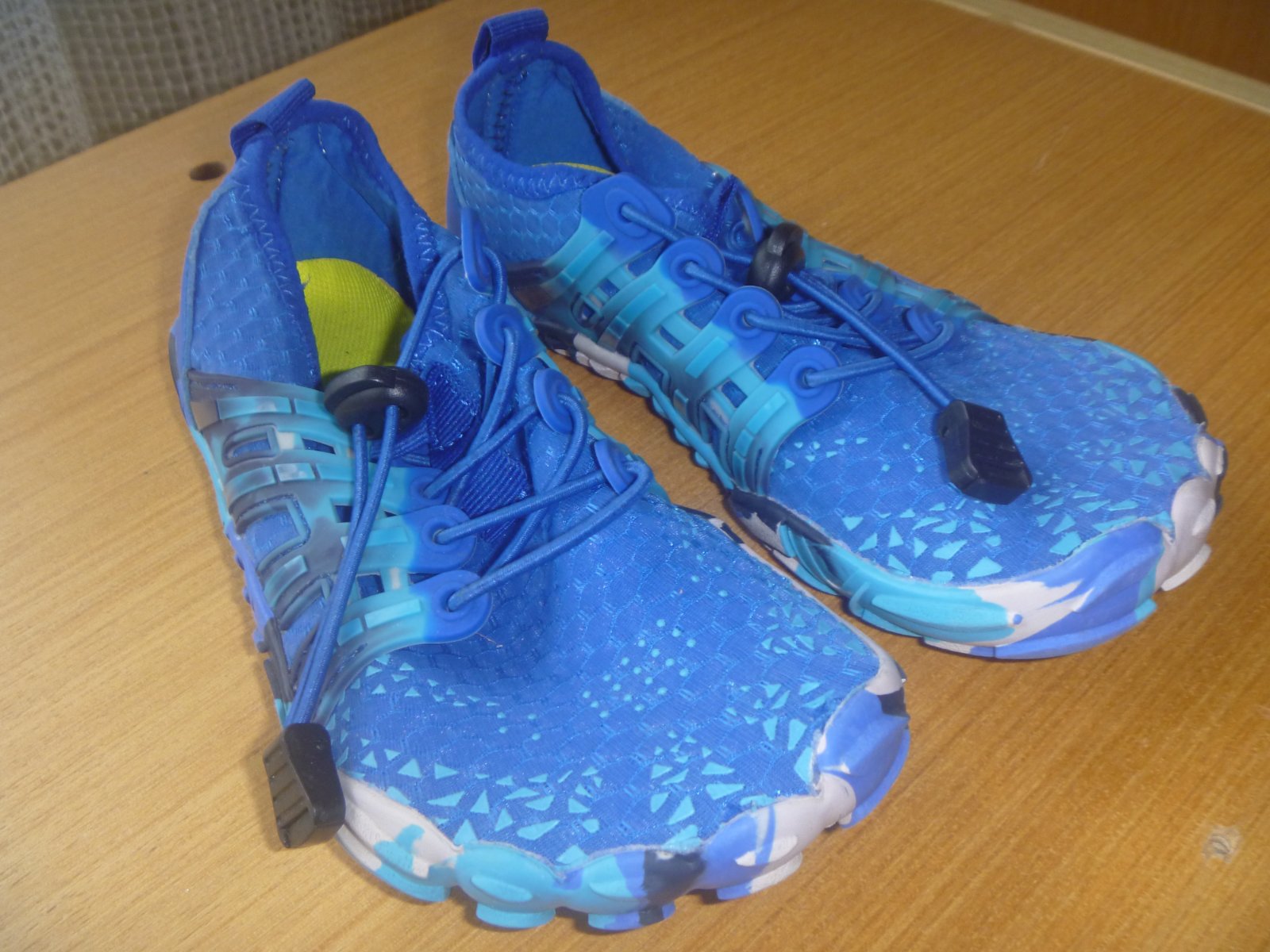 2/ modrotyrkysové s černomodrobíloou podrážkou, modré šněrování