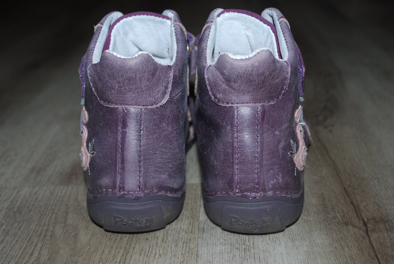 Prodám kvalitní celokožené botky značky Ponte.. Jsou lehké, ohebné a velmi pohodlné.. Jsou nošené jedním dítětem a jednu sezónu.. Jemná kůže je náchylnější na oděrky, proto je to na botkách viditelné.. Podrážky i paty jsou ale plně funkční.. Délka vnitřní stélky měří 18cm.. Jsou v záruce do 19.2.2026..