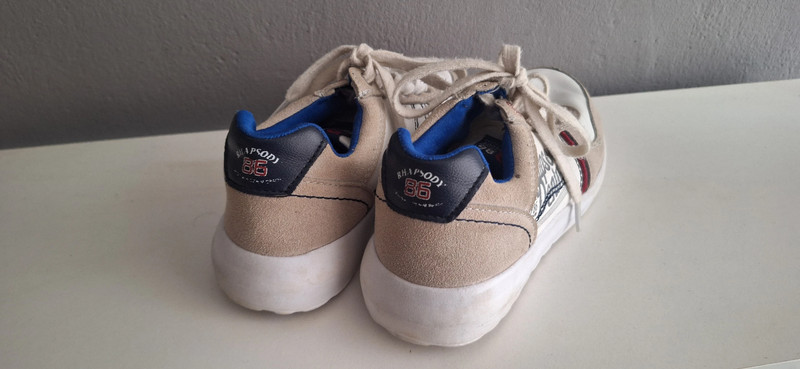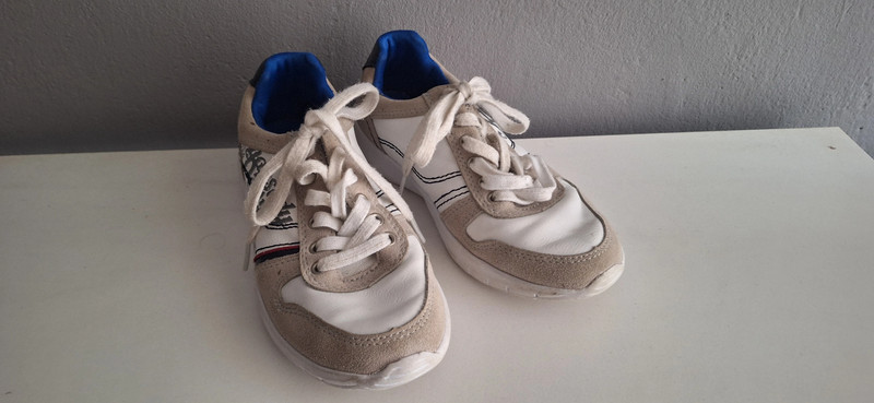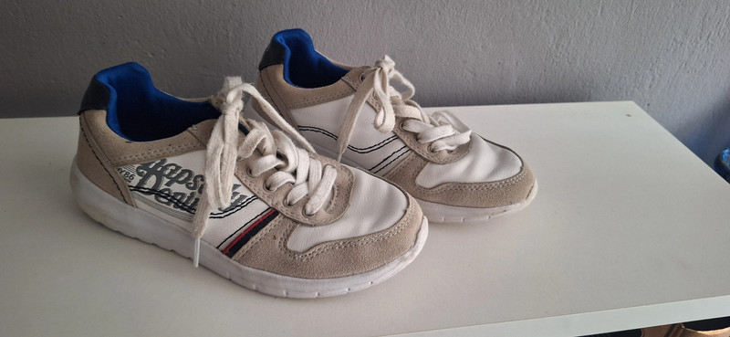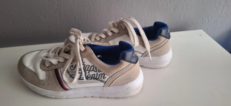 Pouze esteticke nedostatky, jeste v dobrem stavu, na behani ale klidne i do skoly. Maji goretex.