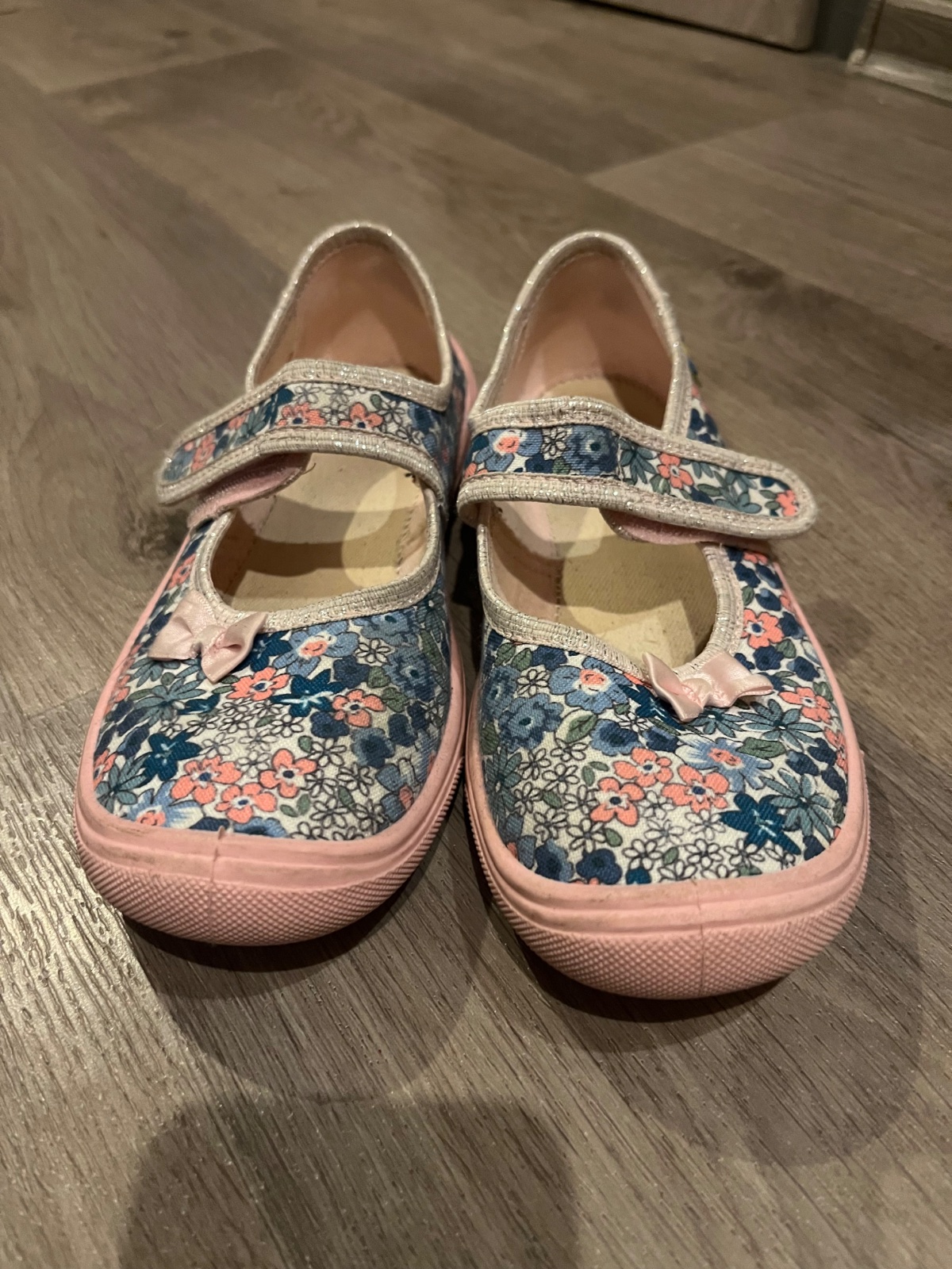 Protiskluzna podrážka,uvnitr beránek. Na jedné chybi par ťuplíků protiskluzu, jinak bez vad. Velikost odhaduji dle dcery na 33-34