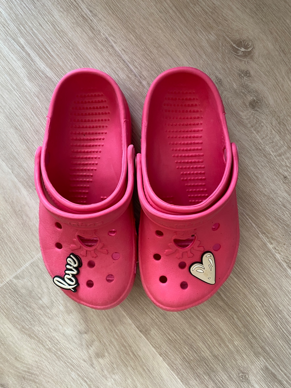 Pantofle jsou v dobrém stavu, podrážka jen mírně ochozená. Na levé botě chybí pásek, který patří za patu. Není ale třeba. Pantofle drží na noze dobře i bez něj. Délka stélky 20 cm.