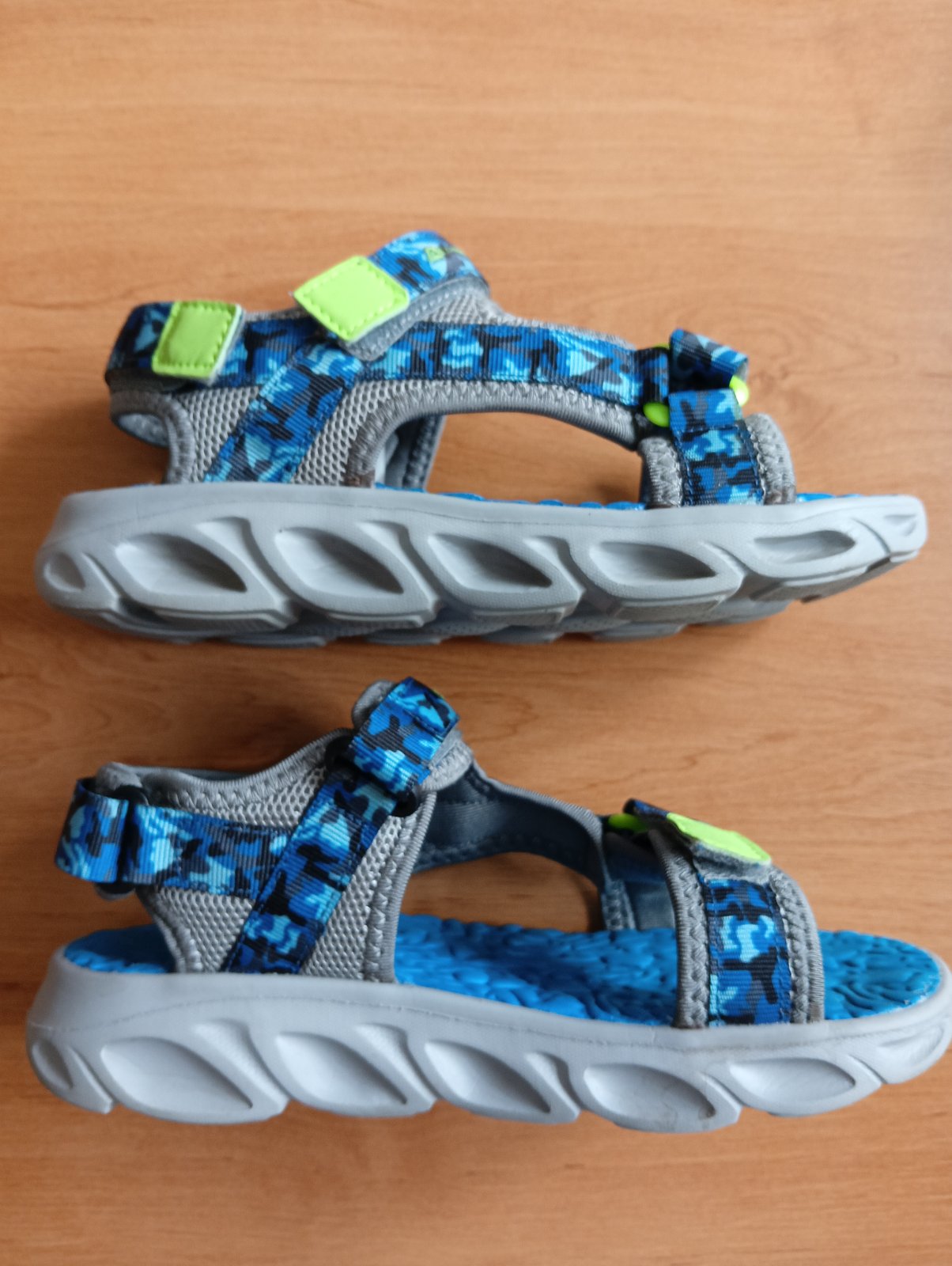Nošené, ale v pořádku. Sandály Lotto, modré Crocs Vel. 34, šedé vel 36, ale jsou trochu menší. Celkem 180