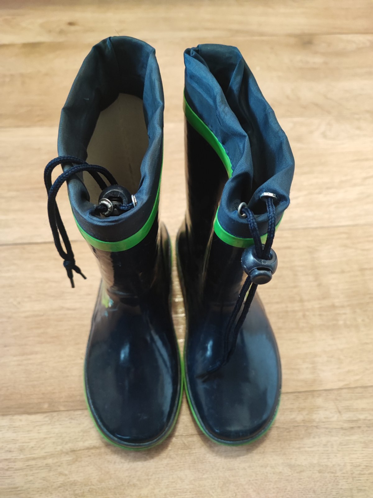 Gumáky se stahováním a reflexním prvkem. Velikost 31, délka stélky na fotce.