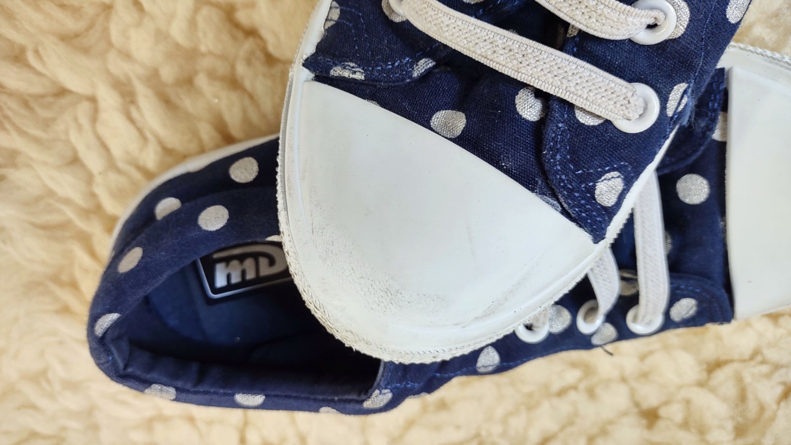 Nošené v tělocvičně, zachovalý stav, jen mírně odřená špička, viz foto.