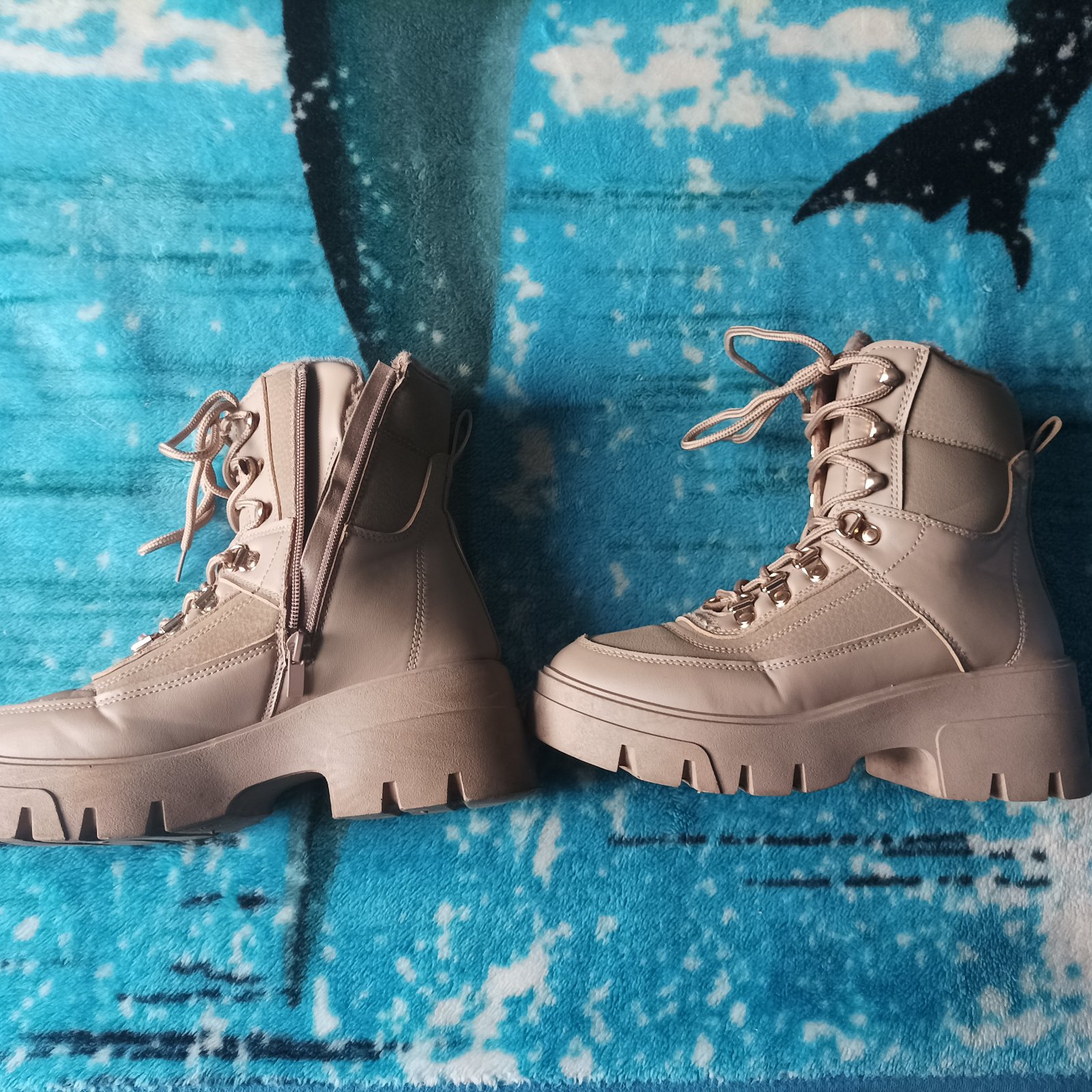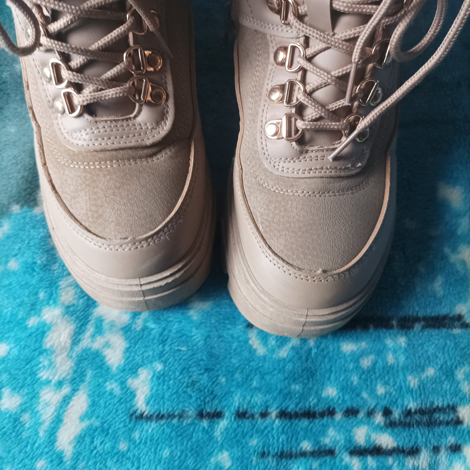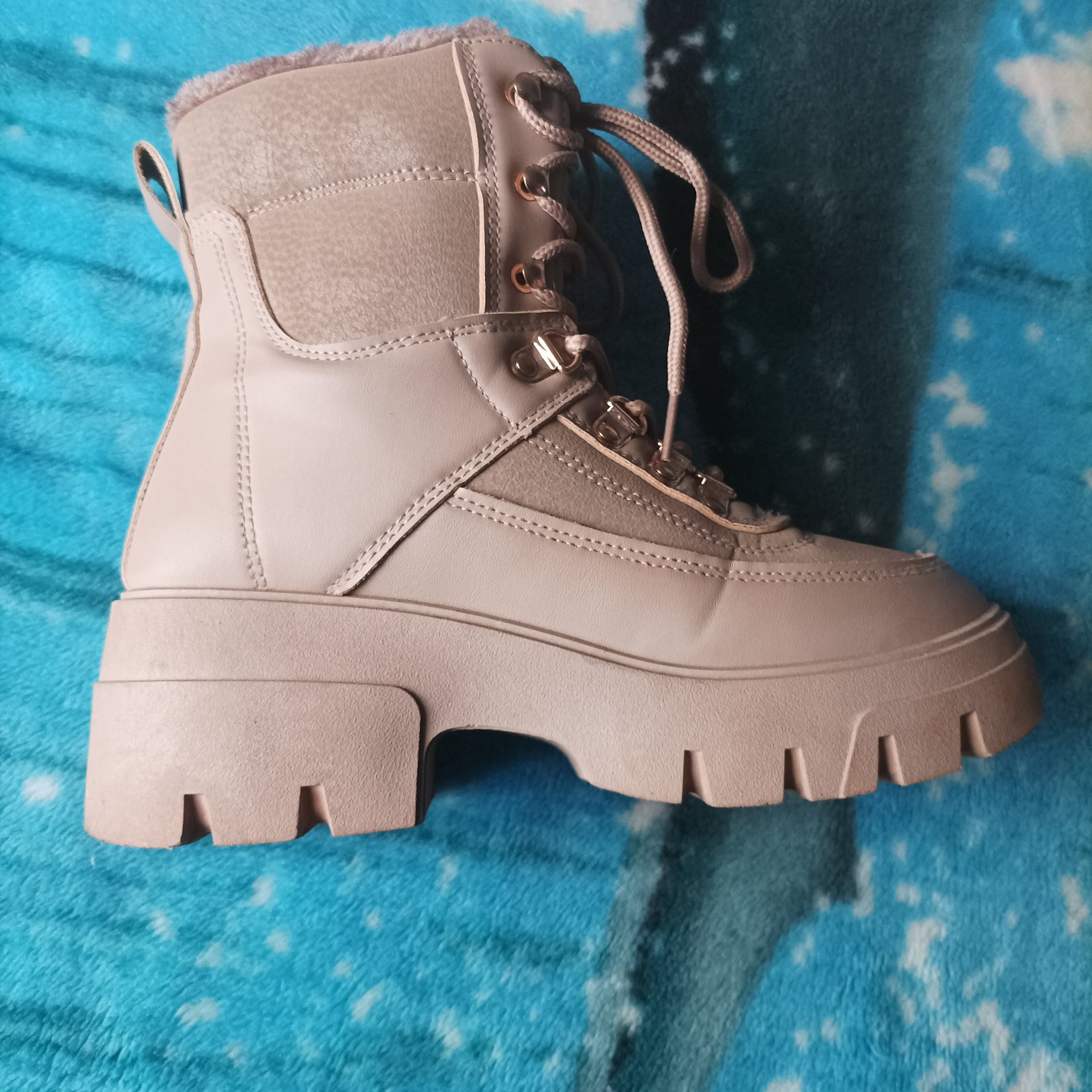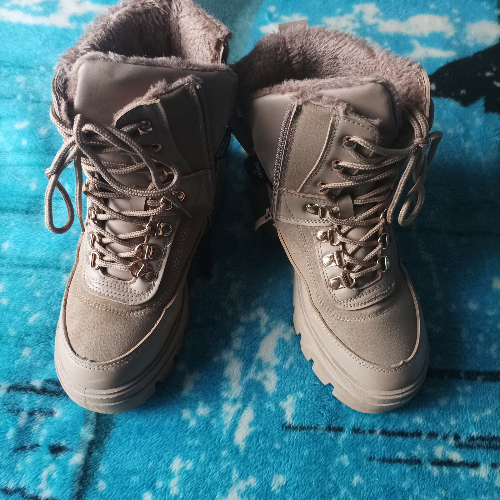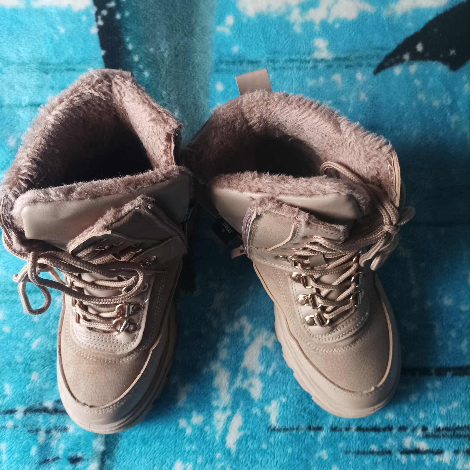 Prodám světlehnědé zimní boty, vyšší platforma, vyteplené kožíškem, zavazování + zip na boku. Nošeny pár krát na loni na konci zimy,teď už jsou malé, nezničené, nesešlapané.