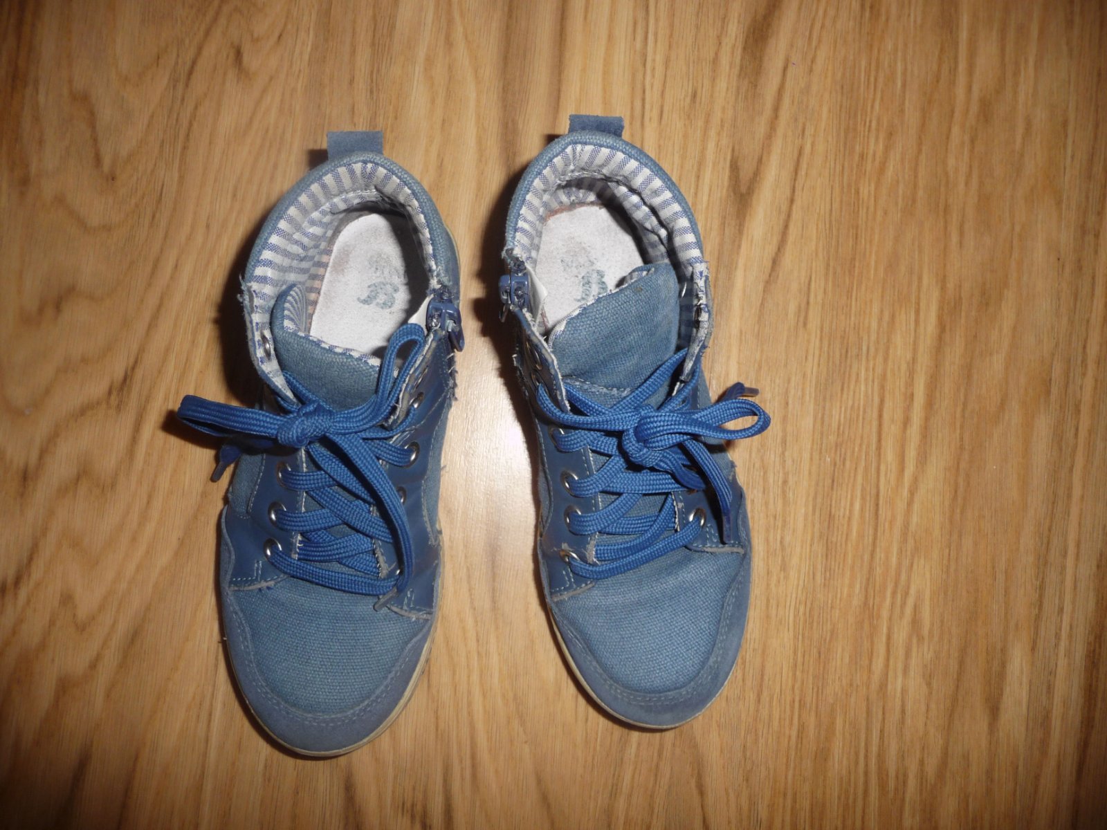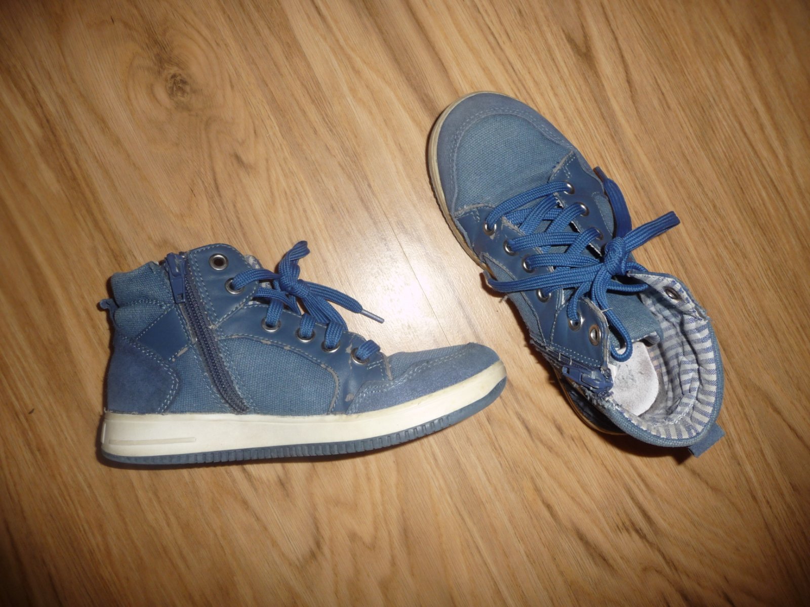 Nošené kotníkové botky od Bati, po straně na zip, stále ještě pěkné, jen sem tam malé podřeninky na boční kůži a malinko šouplé podrážky, uvnitř také plně v pořádku.