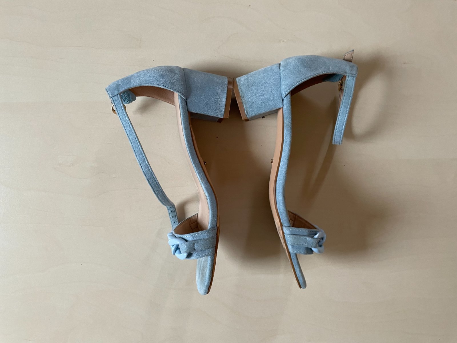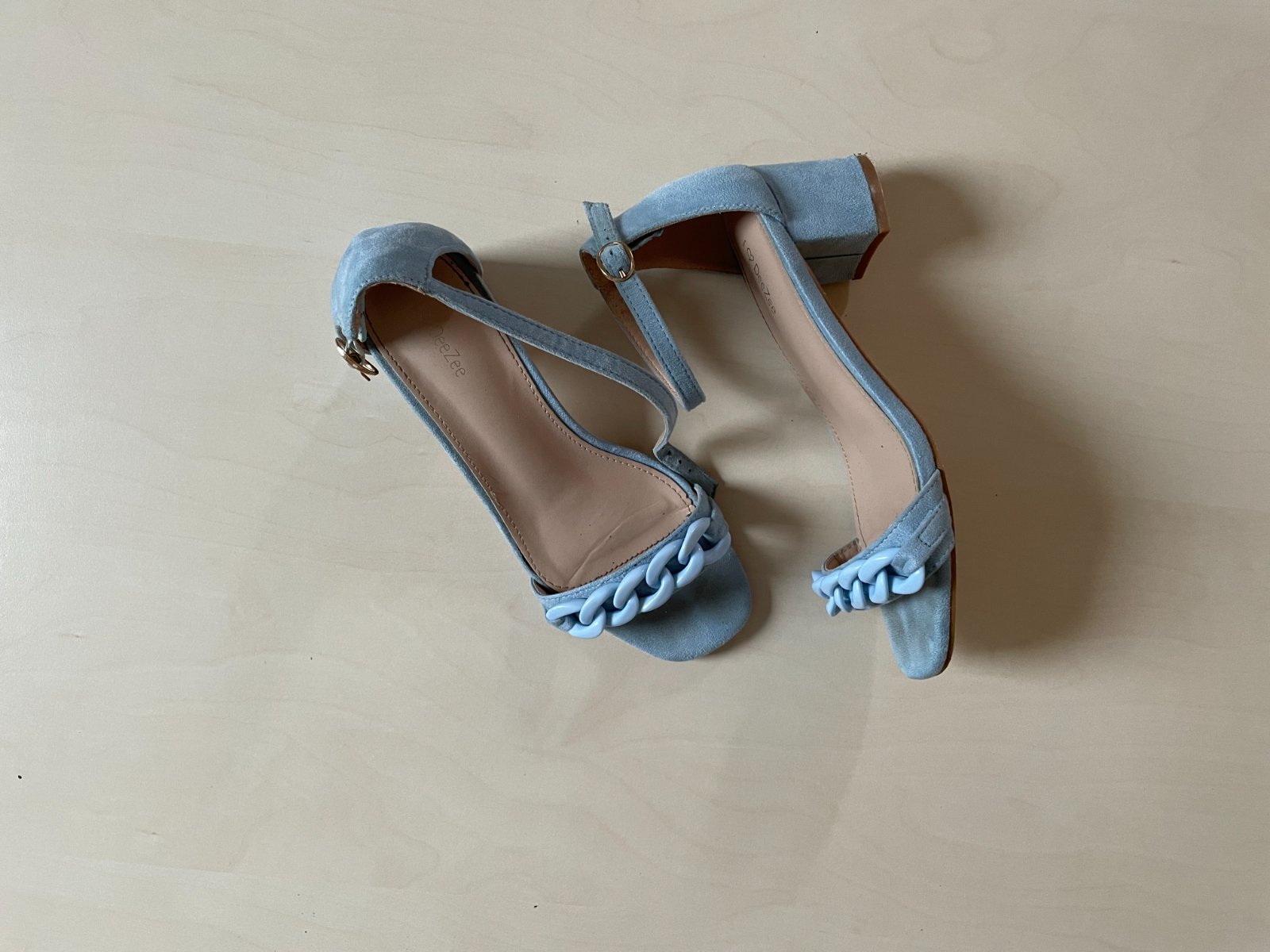 Nabízím k prodeji tyto modré střevíce na nizším (cca 5,4 cm) širokém podpatku, vel 37, Dee Zee. Materiál modrý jako semiš, uvniř paty byla výstelka, už je jen tam zčásti. Jsou nošené, mají zašpinění podrážky a ve špičce a běžné škrábance a opotřebení způsobené nošením, nic zásadního viz fota, stále krásné.