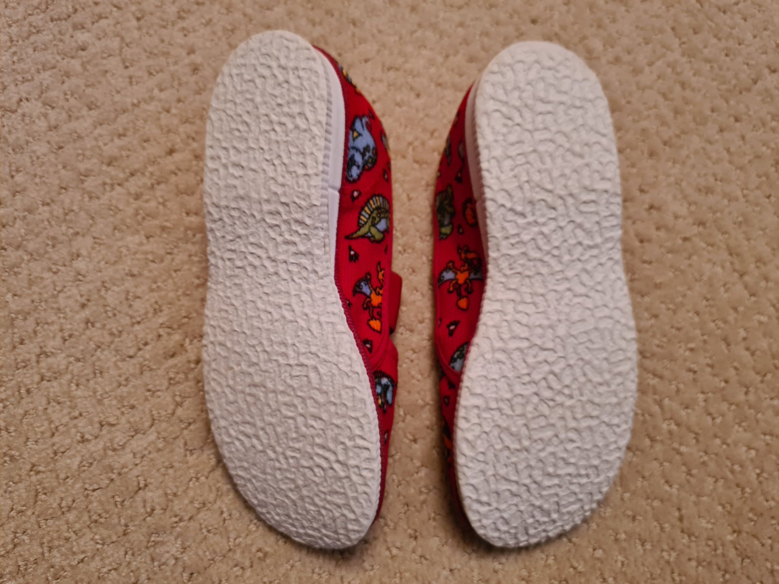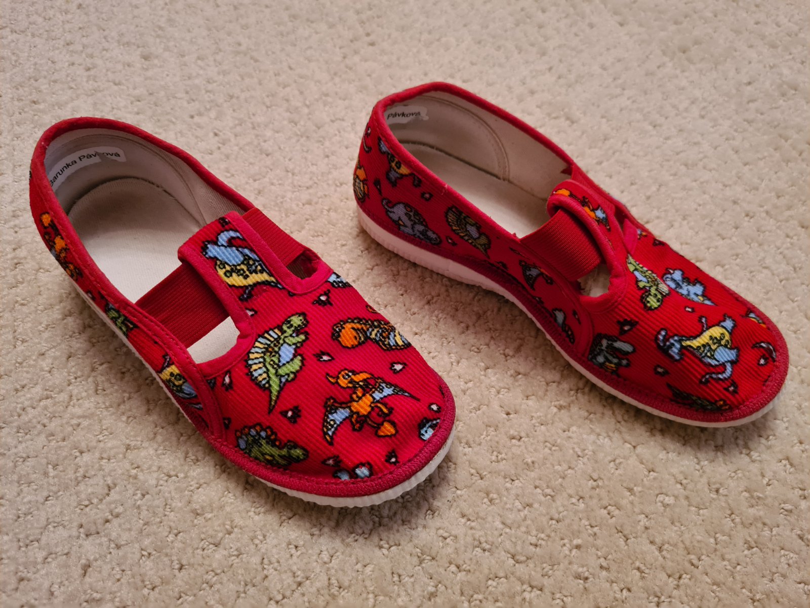 Klasické červené papučky - délka stélky 18,5 cm, několik let ležely v krabici, proto je uvnitř tvarovaná gumovaná stélka, jako to bývalo dříve samozřejmostí, špičky okopané, místy odlepený okraj od...