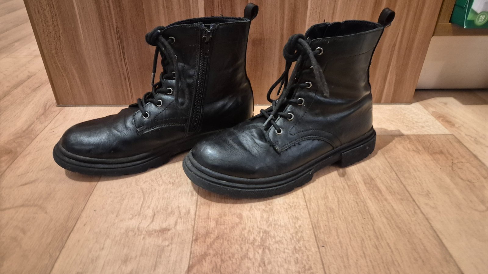 Zimní kožené dívčí kozačky, nošené 1 sezónu, ošetřováné. Mají poškrábane špičky, neni to vidět, spíše na donošení.