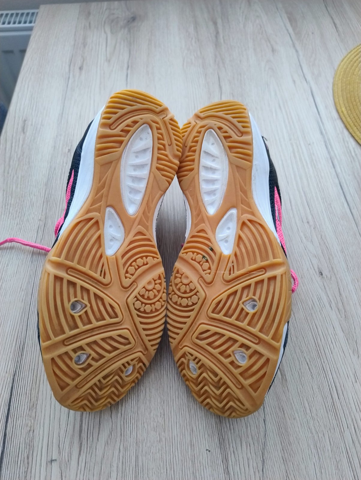 Sportovní boty sálovky možno i na ven po mém synovy.Velikost je 38,5 délka stélky 24 cm.Na jedné botě je čmouha viz foto a je trochu odřená viz foto s palcem jinak jsou v pohodě a ještě dobře poslo...