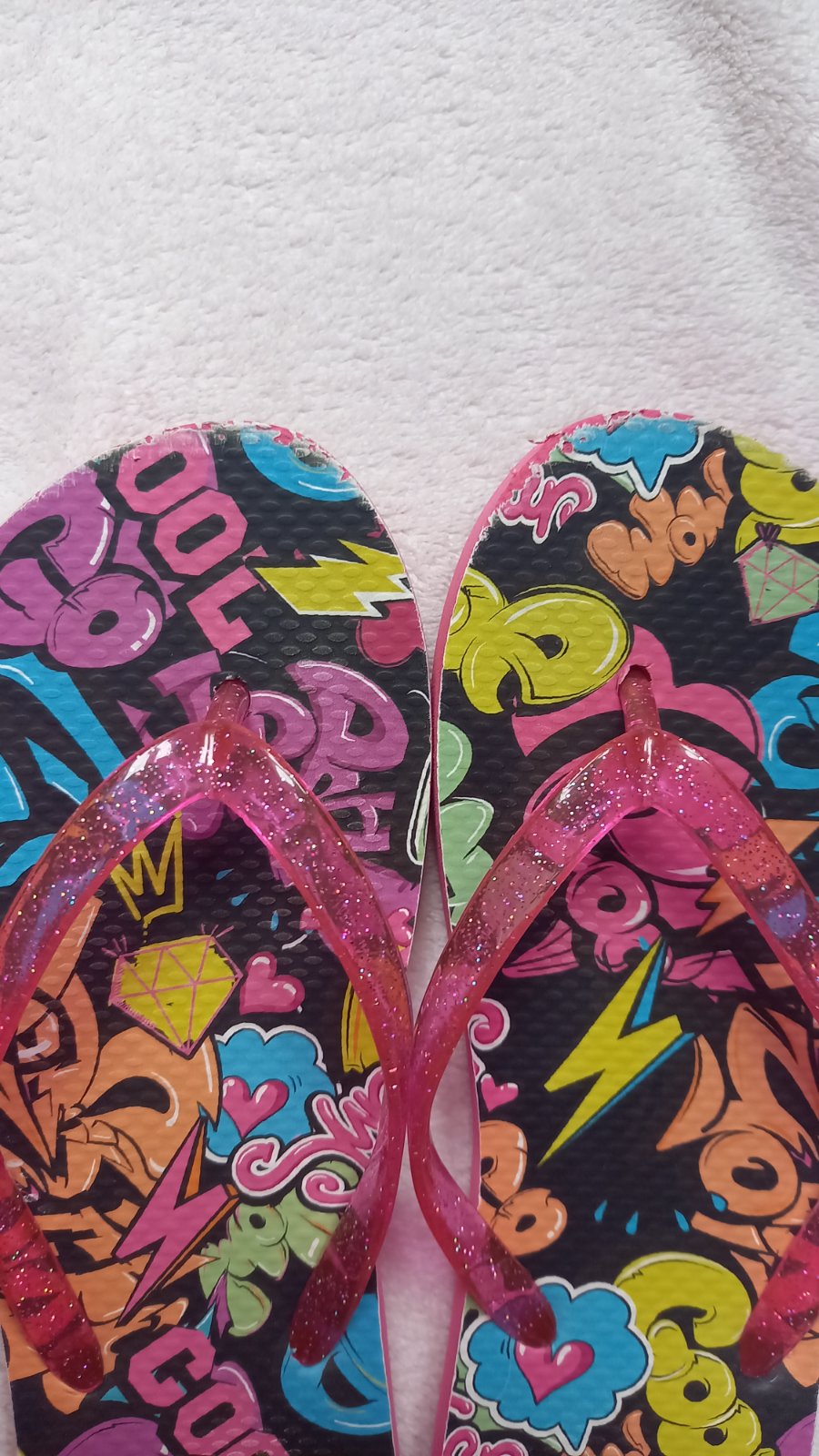 Pantofle jsou používané, mírně ochozené. Jinak nezničené. Vnitřní velikost boty je 21 cm.