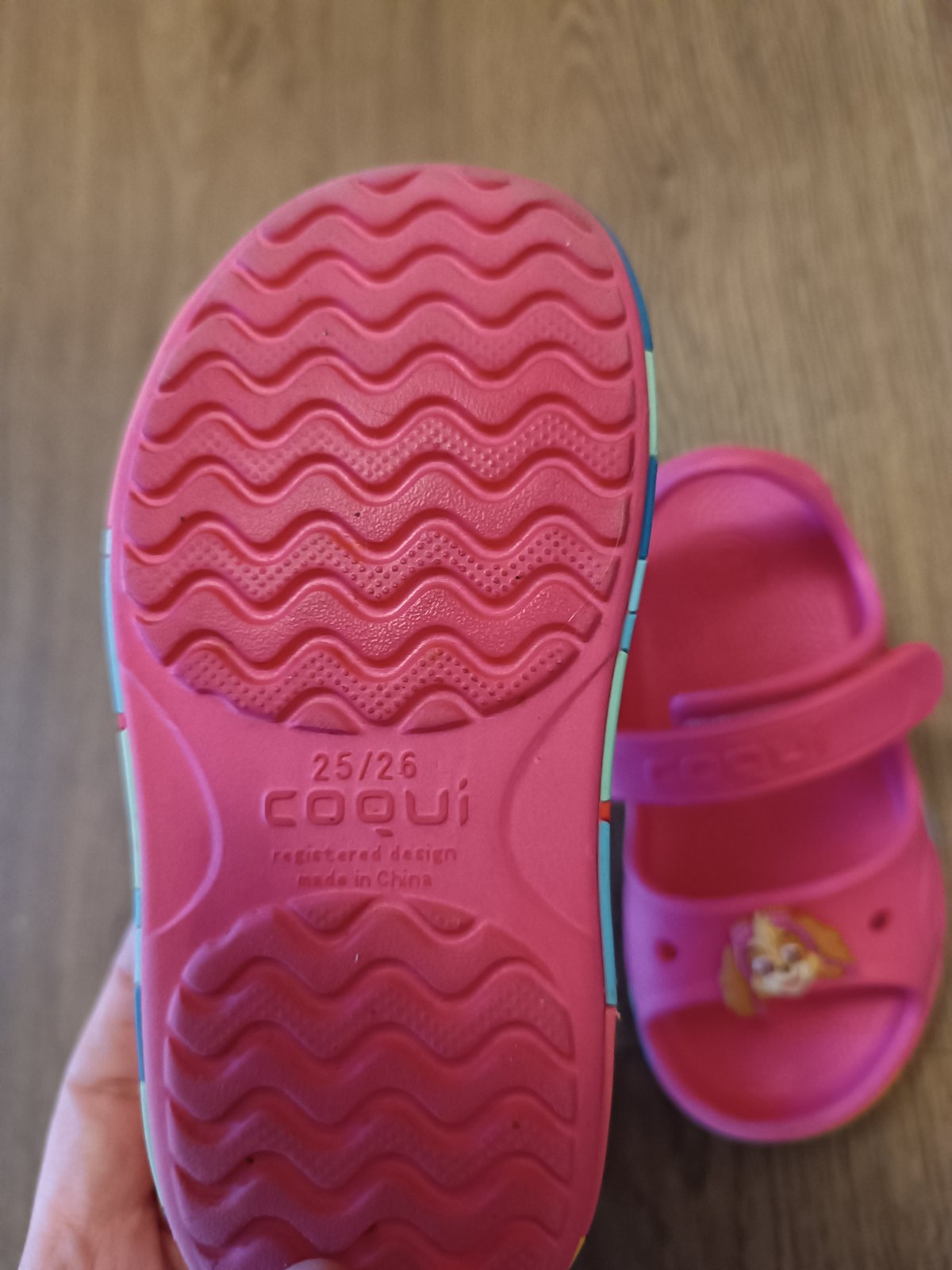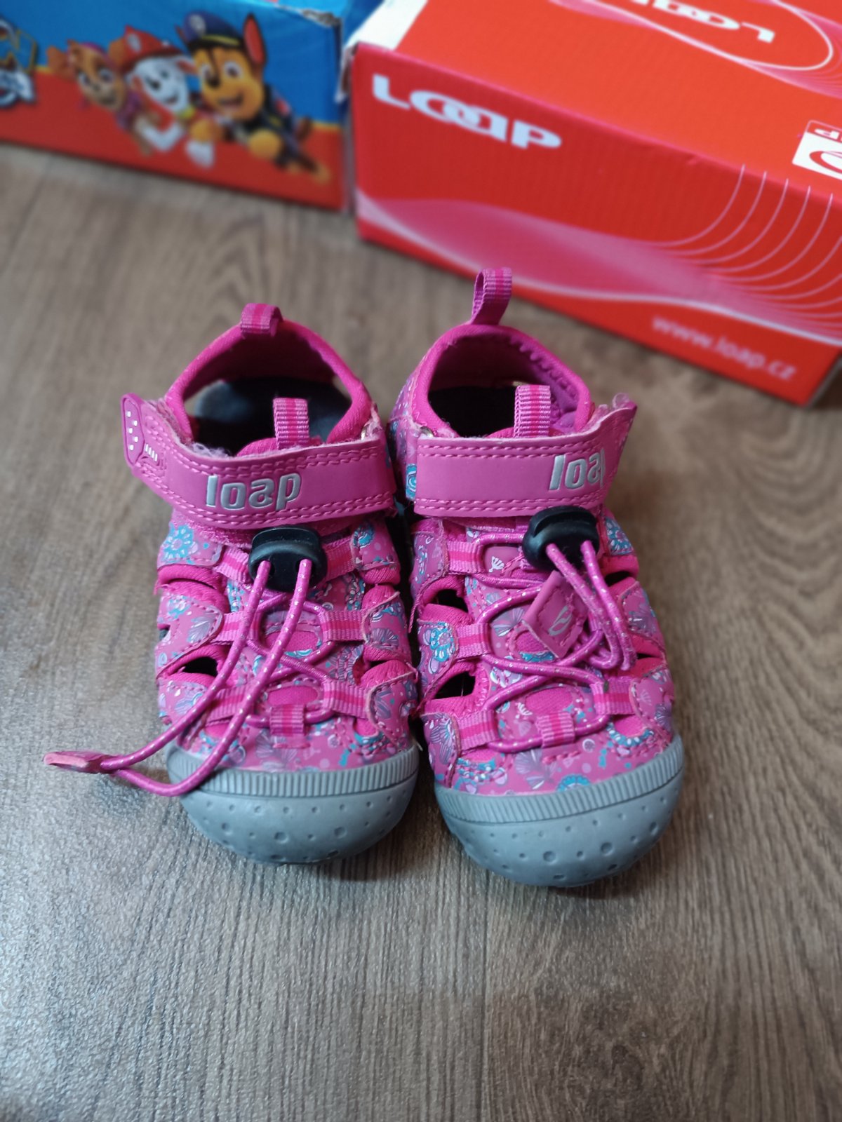 9) Růžové sandálky s Tlapkovou patrolou, COQUI, vel. 25/26, nošené cca měsíc, kupované ve Sportisimu, pěkný stav, cena 200 Kč.