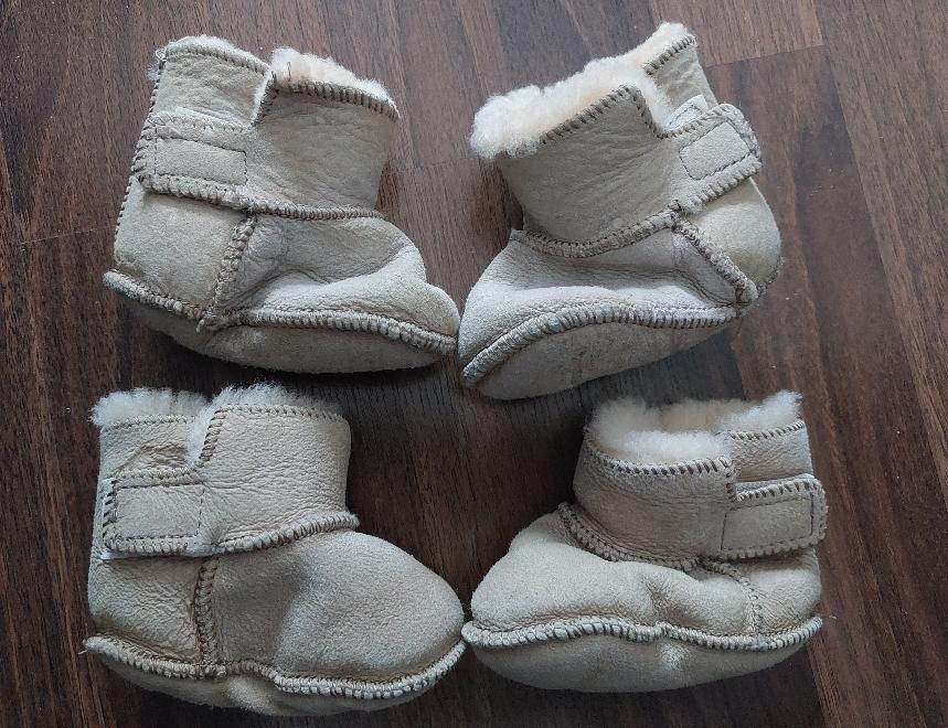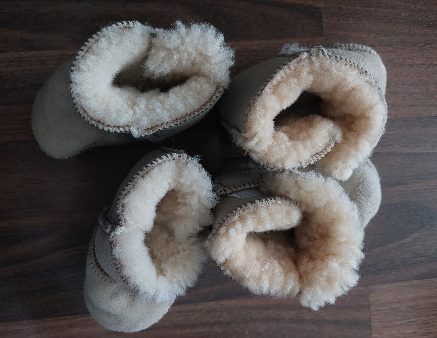 Prodám 2x zimní capáčky s jehněčí kožešinou (ty v horším stavu přidám zdarma), velmi teplé, ideální do kočárku. Velikost 6-12 měsíců, cca 12-12,5 cm. Po 2 dětech, jsou vyprané, takže kůže už není v top stavu, ale kožešina uvnitř stále bez vad a zahřeje. Dceři už jsou bohužel malé a už začala chodit, takže jsem už kupovala jiné zimní capáčky na první krůčky.