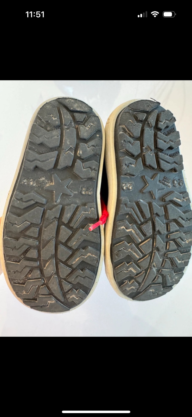 Perfektní nepromokavé zateplené zimní boty. Velikost 22. Zakoupeno v CCC. Skvělí stav. Maličká vada na podrazke vod soli.Na funkčností nemá vliv. Viz.foto. Lehké na nošení.