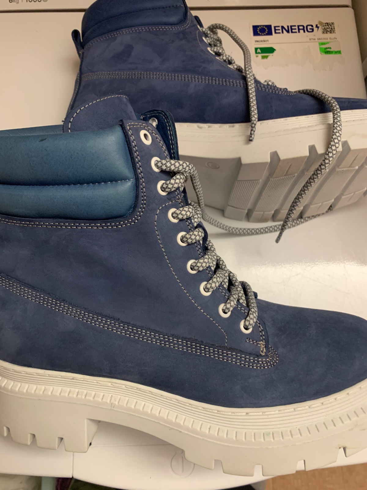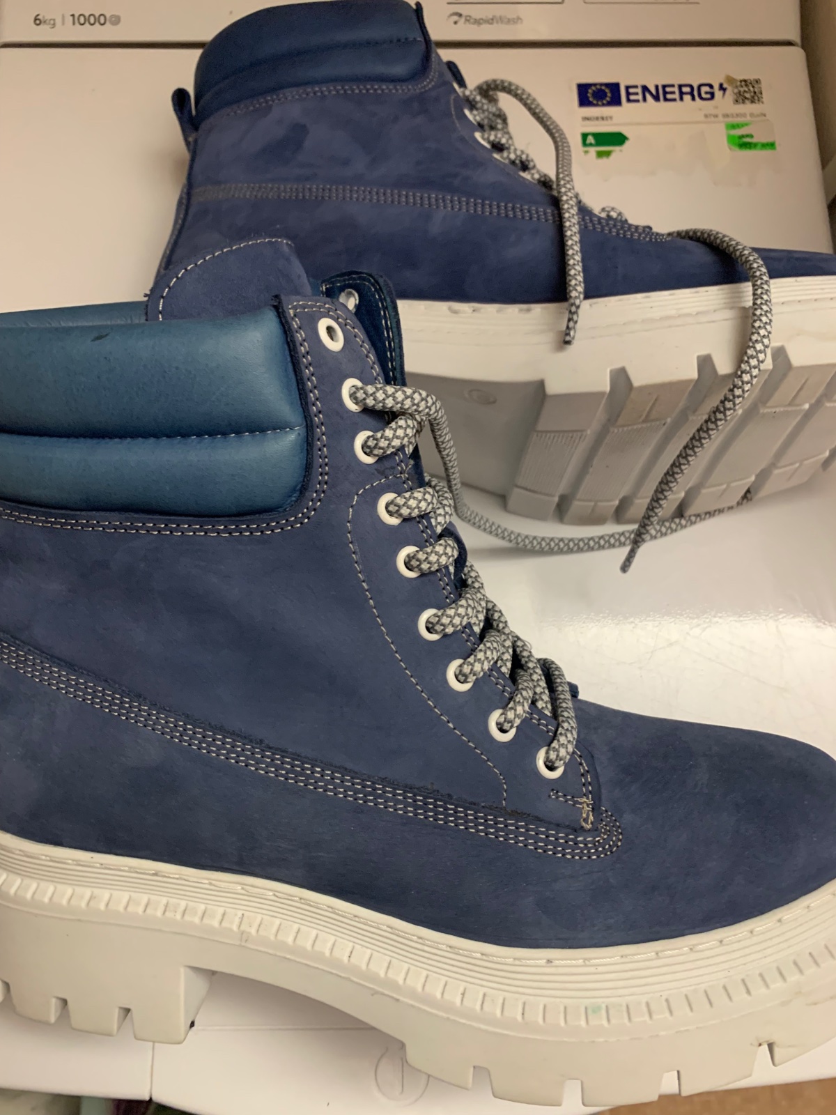 Boty byly na noze pouze jednou v interiéru. Jsou v bezvadném stavu, téměř nové. Nejsou kožené, je to nějaká imitace semiše.