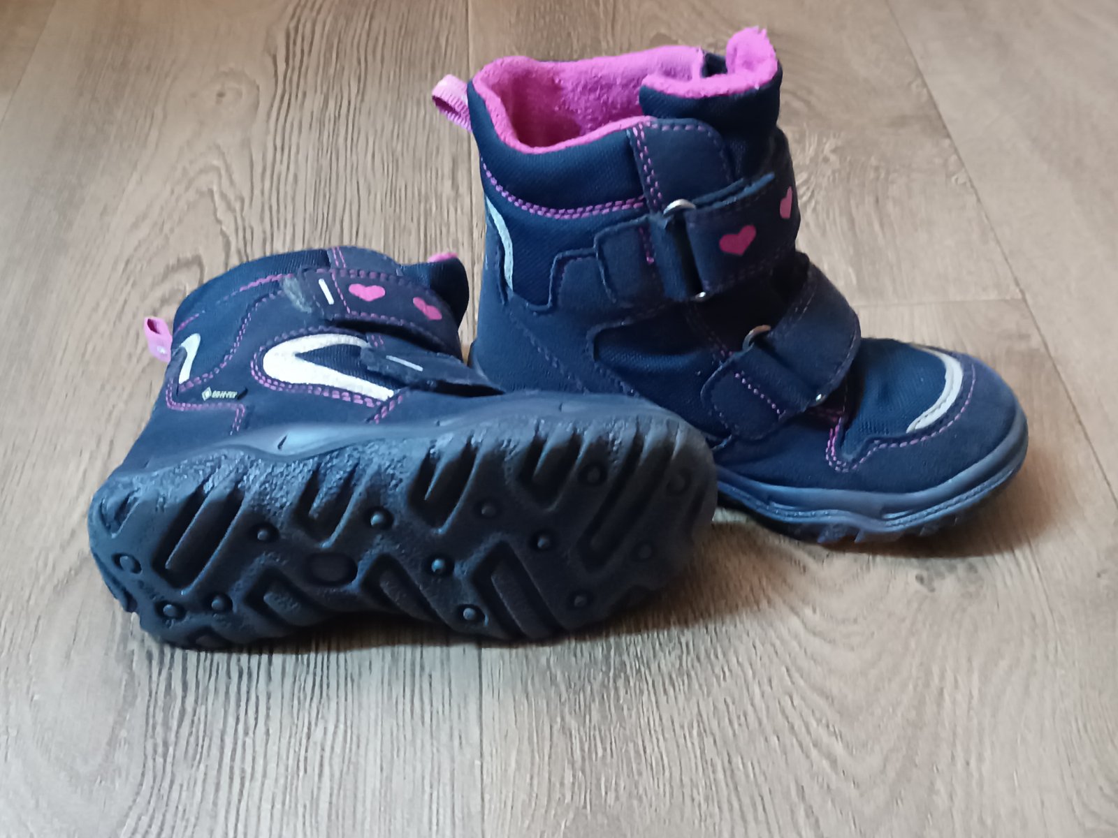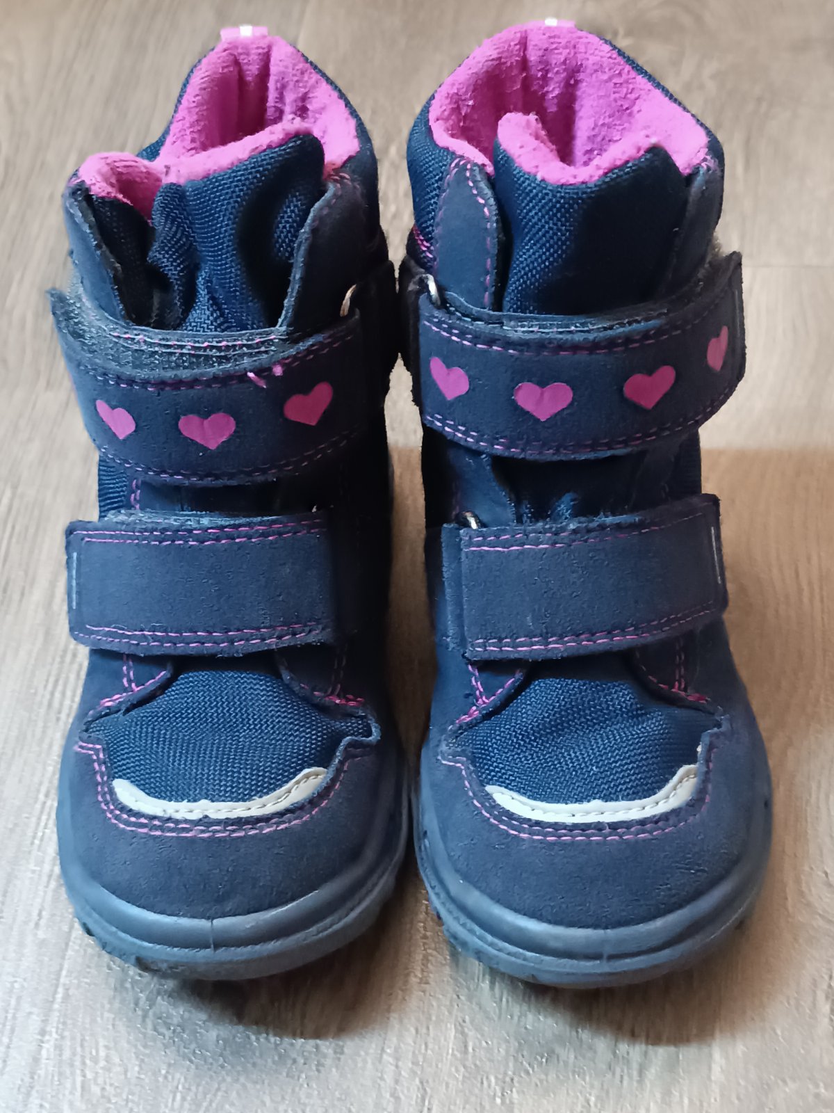 Nabízím dívčí zimní boty značky Superfit, tmavě modré, velikost 25. Délka stélky 16,5cm. Vevnitř krásně vyteplené, s membránou Gore-Tex pro zajištění nepromokavosti a prodyšnosti. Nošené, hezký stav.
