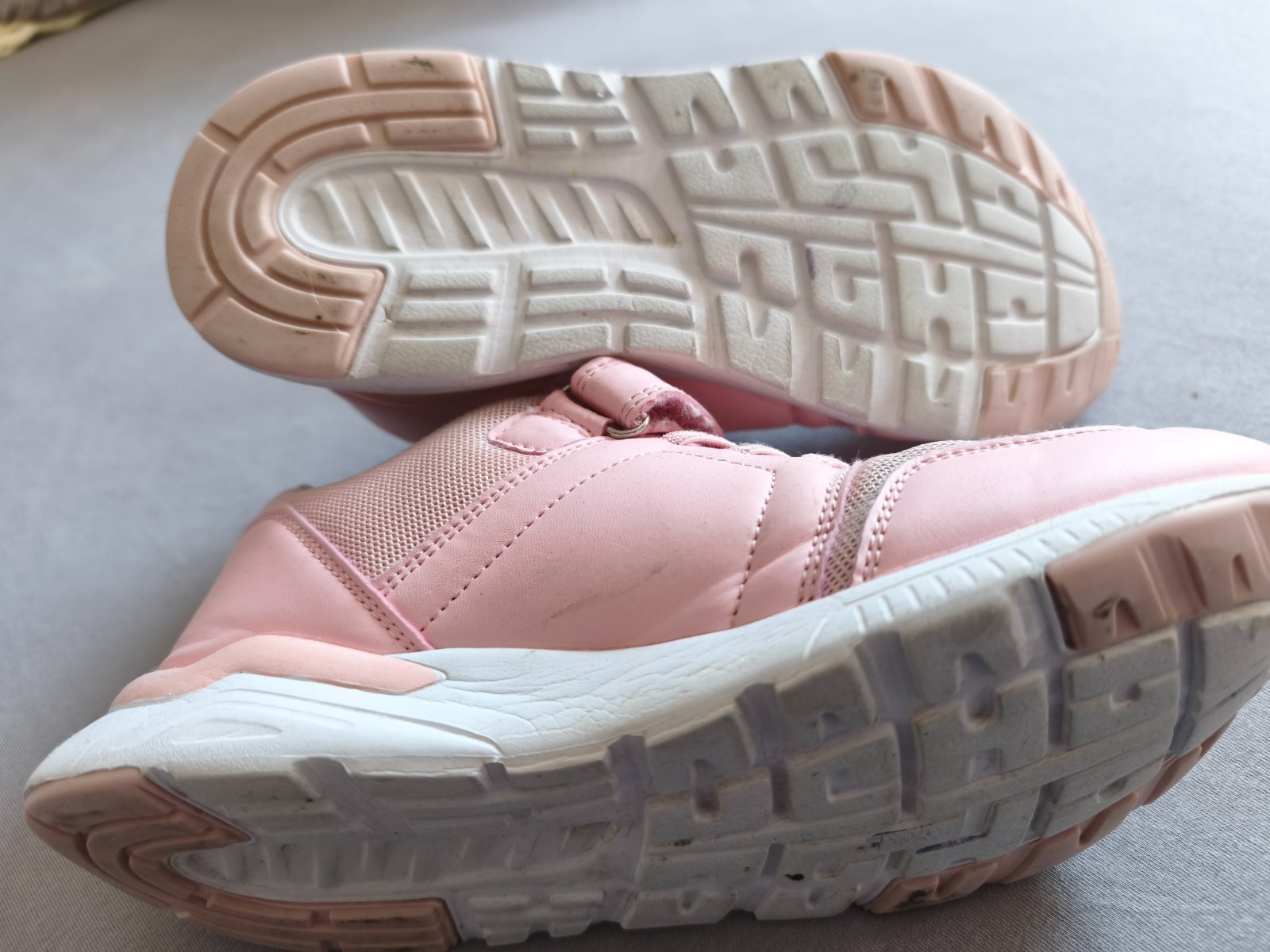 Nošené, ale ve výborném stavu. Dcera měla pouze na tělocvik vevnitř. Délka stélky cca 23 cm.