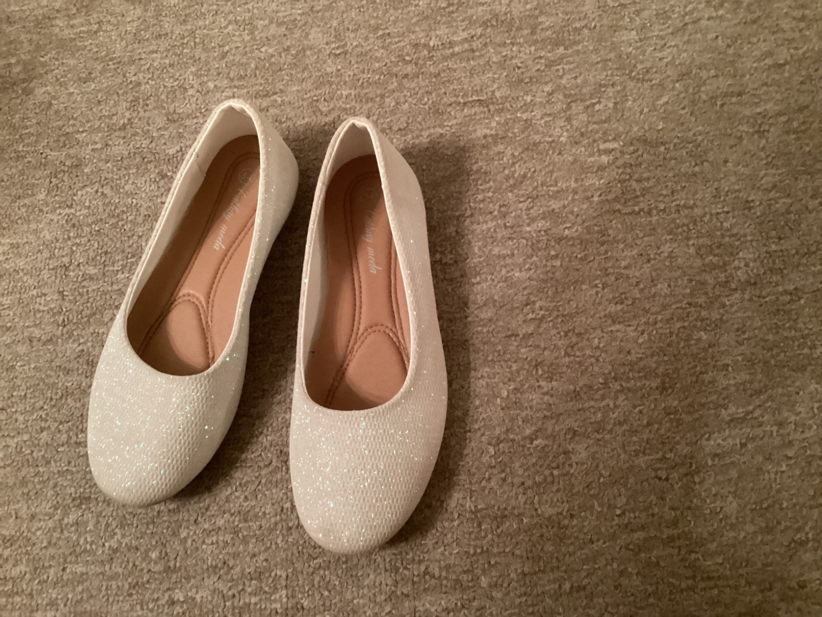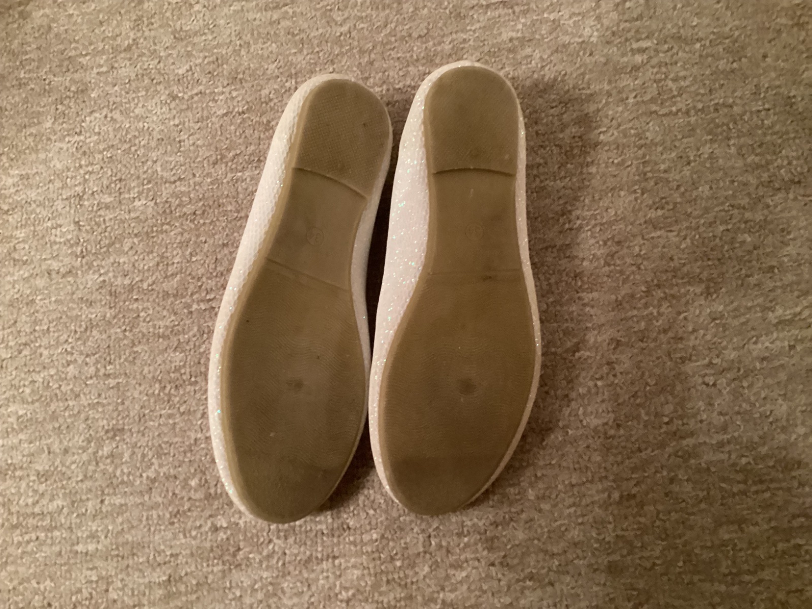 Vel 34, nošené jen jednou na slavnostní příležitost, boty se třpytí