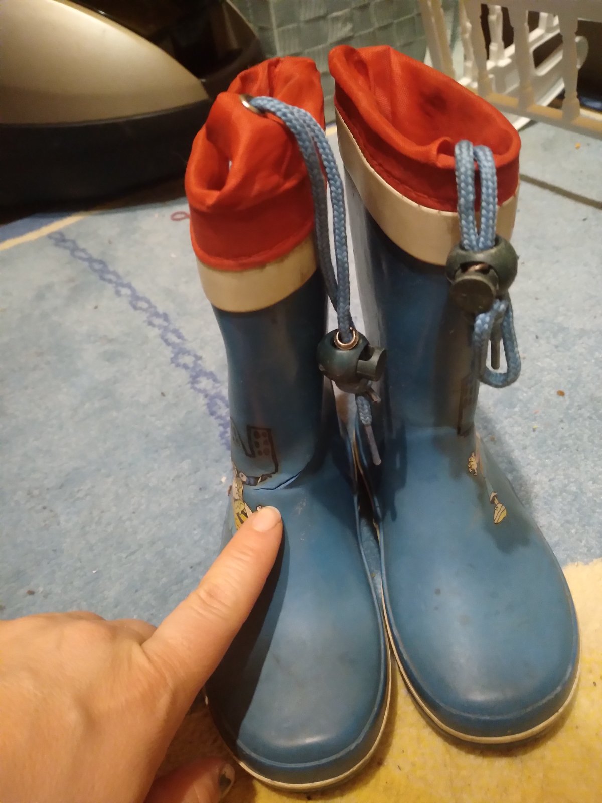Prodám gumáky v zachovalém stavu, značka: Cortina, velikost: 24, délka vnitřní stélky je: 15 cm, na jednom gumáku je asi centimetrová prasklina, vyfoceno, cena tomu přizpůsobena. Cena za gumáky je 10 Kč + poštovné. Krabice č. 45.