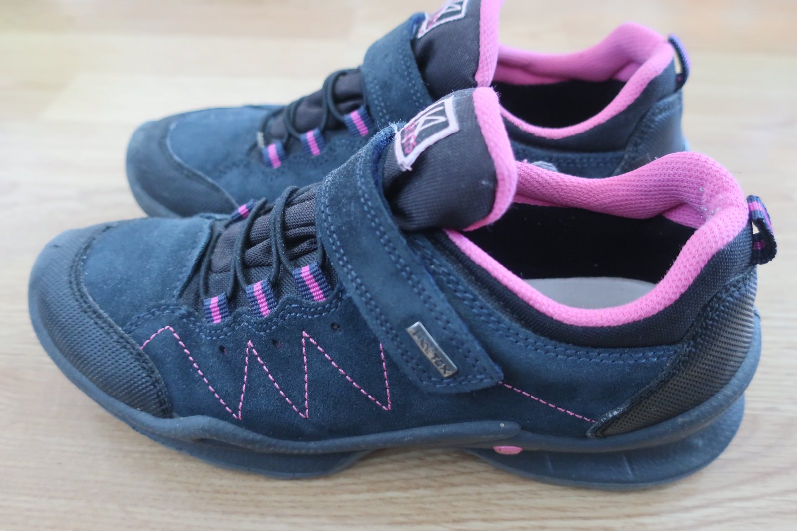 Prodám celoroční kožené boty s membránou zn. Imac Santé, vel. 38, délka stélky cca 25,6cm. Vrchní materiál semiš, barva tmavě modrá, zapínání na suchý zip + stahovací gumové tkaničky. Boty jsou měkké, pohodlné, byly ošetřovány impregnací. Na pravé botě chybí malý růžový znak (viz foto), jinak jsou boty v pořádku. Možný osobní odběr v Brně, pošta nebo zásilkovna.