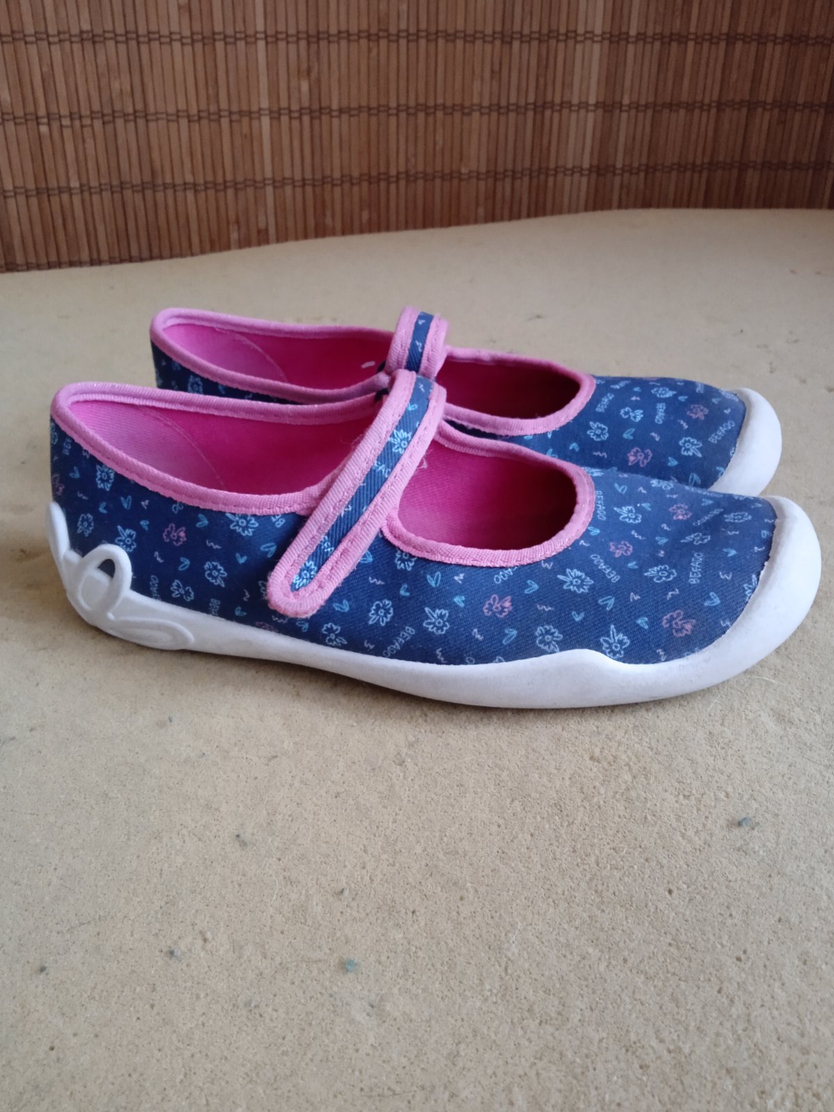 Prodám dívčí přezůvky / papuče zn. Befado vel.36. Nošeny pouze v kroužku, hezký stav. Žádný kamínek nechybí. Vnitřní délka se neměří moc dobře, naměřila jsem 22,5 cm. Posílám přes Zásilkovnu a Balí...