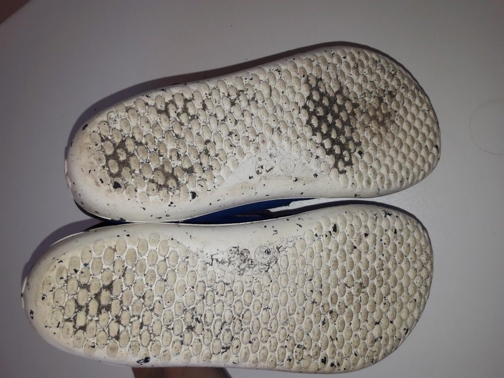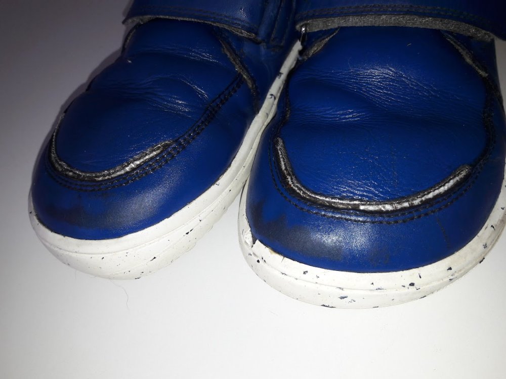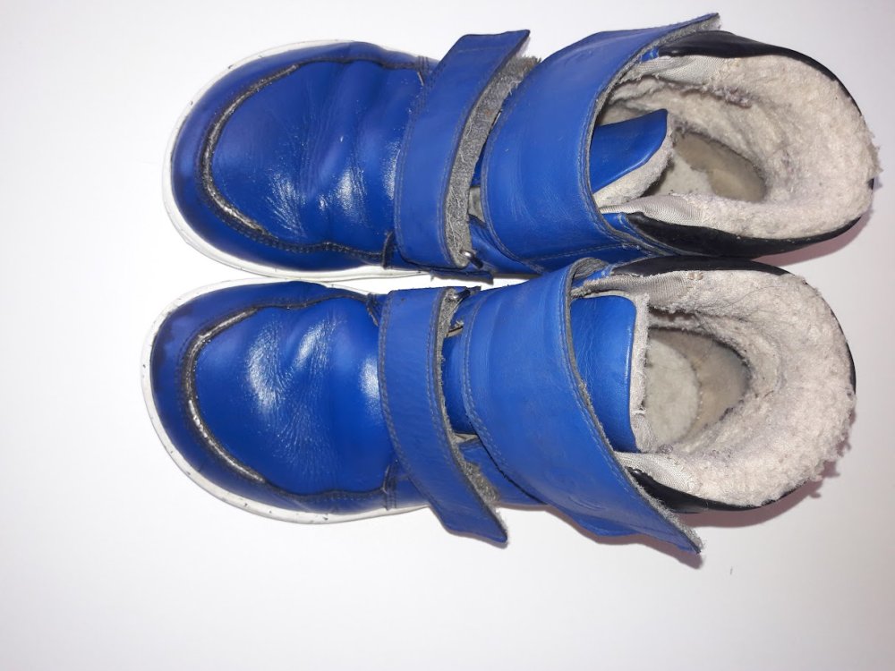 Prostorné pro ploutvičky, zateplené kožíškem. Kožené. Na levé špičce ukoplý kousek gumy nad palce, ale kůže sahá ještě kus pod gumu, neteče tudy. Nošené jednu zimní sezonu na střídačku ještě se dvěma jinými páry bot. Po dceři, nesešmajdané.